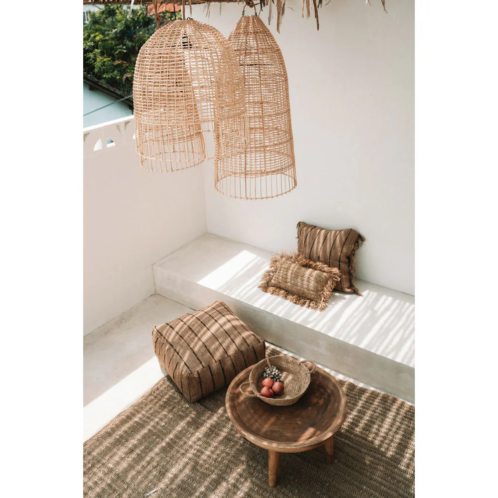 This cage shaped rattan pendant lamp breathes the Italian islands’ atmosphere with its fantastic coastal design. Hang it up, turn on the lights and you’re immediately transported to the vibes of beach bars at night. It’s also possible to use this as a floor lamp. There are two sizes available and also don’t forget to check out our Amalfi Pendant – they go great together!