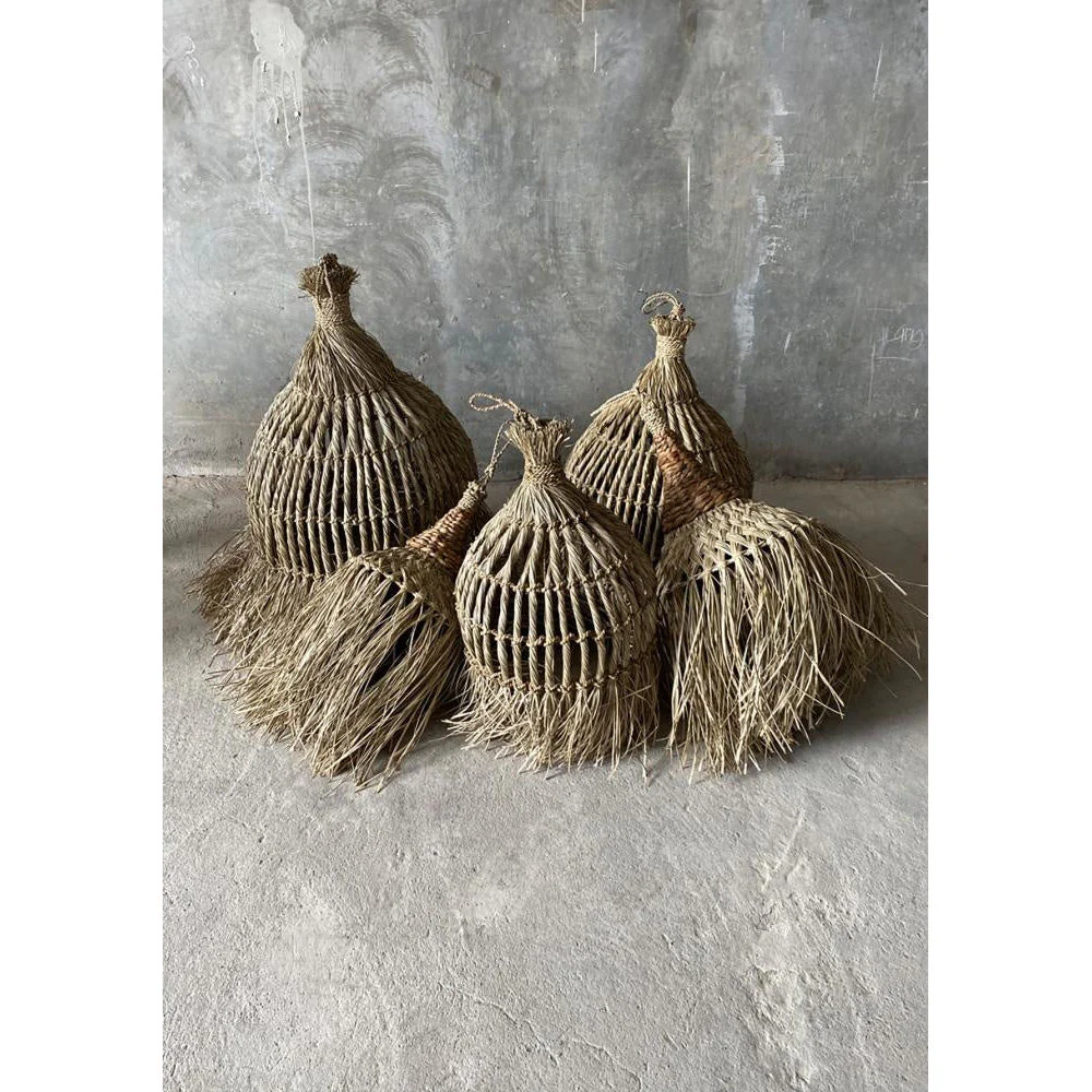 Bring the island vibes into your home with this beautiful Guagua pendant lamp, available in two sizes. Handmade from mendong grass and water hyacinth, you can’t go more natural than this. Hang it in your living room, bathroom or covered outdoor space and create a cozy atmosphere with beautiful light patterns. This lamp has its own suspension cord.