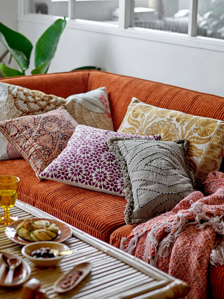 Katoenen kussen met een prachtig borduurpatroon dat elke woonkamer opfleurt.