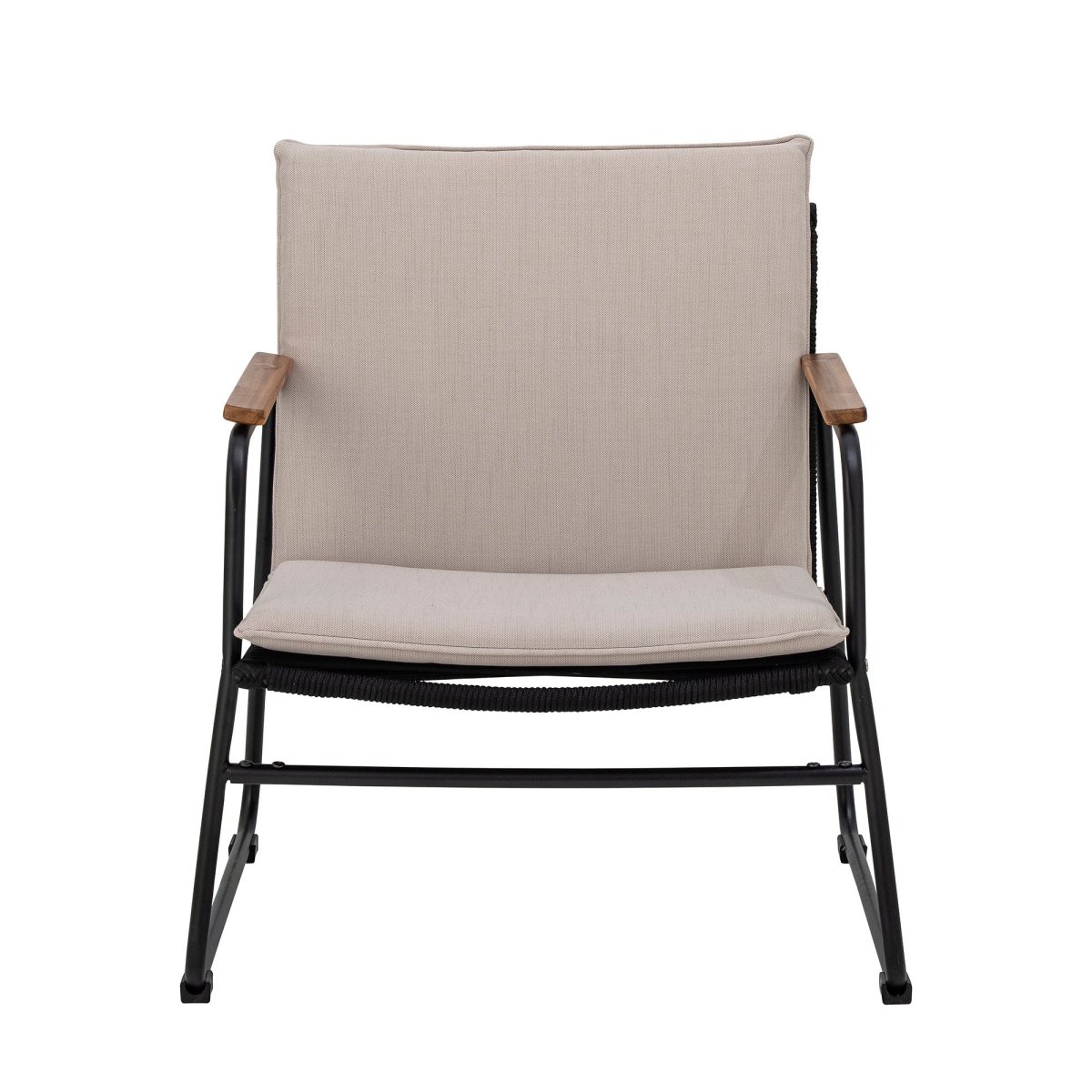 De Hampton Lounge stoel van Bloomingville is perfect voor de zomer en is zeer geschikt voor een klein terras of een kleine oppervlakte. Het frame van de stoel is van zwart metaal, terwijl de zitting en rugleuning van gevlochten koord zijn en samen met de kussens een genot om in te zitten. Gebruik: vuil kun je eraf wassen met lauw water en zeep. De armleuning is bekleed met Acacia en voor onderhoud licht opschuren en herstellen met olie. Het wordt aanbevolen om de stola buiten het seizoen in een overdekte ruimte en binnenshuis te plaatsen.