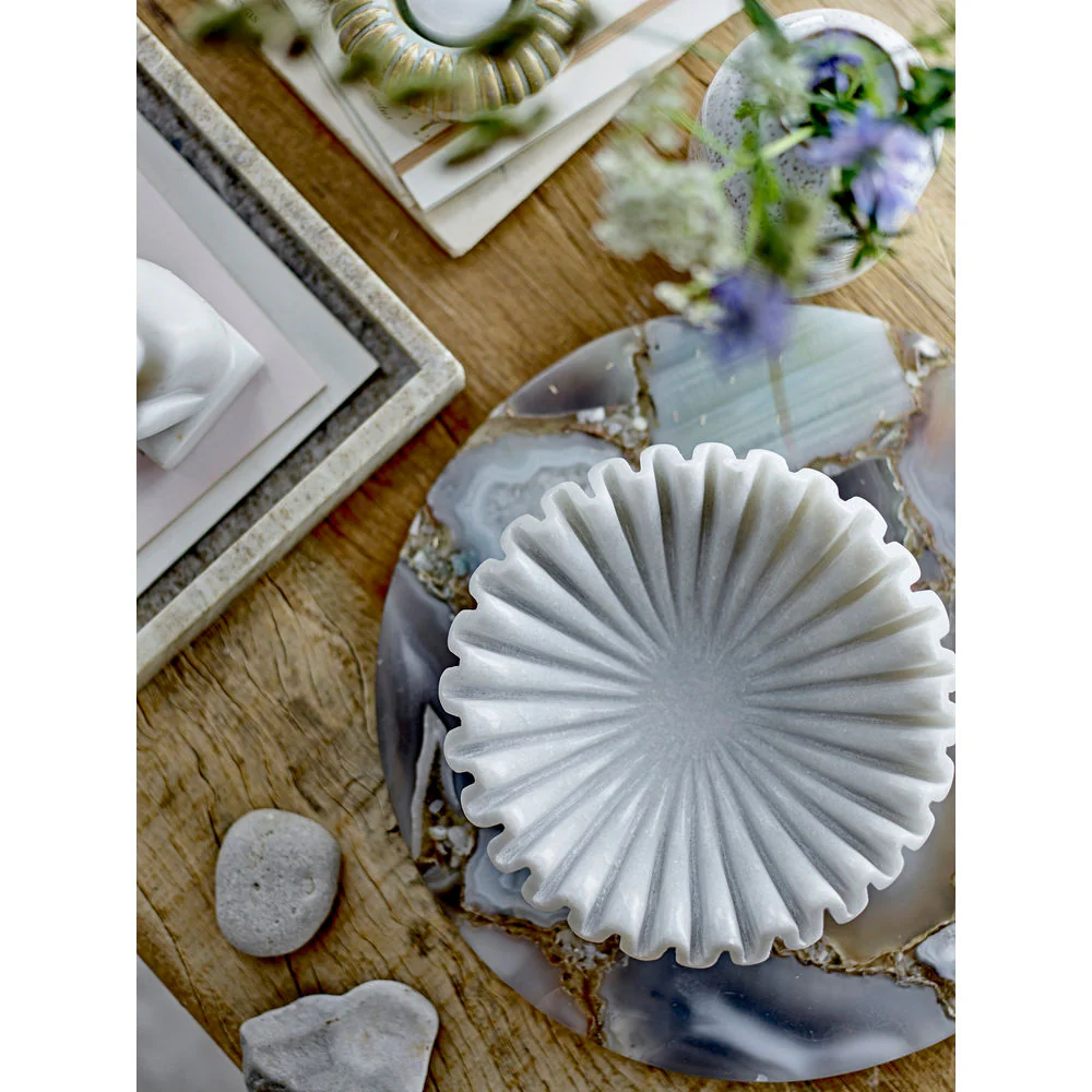 De Harmonia Bowl van Bloomingville is gemaakt van wit marmer in een mooi en elegant gesneden ontwerp. Eigenlijk is de snijtechniek 100 jaar oud en te zien in de paleizen in Rajasthan, India. Zo mooi en gedetailleerd in al zijn eenvoud.