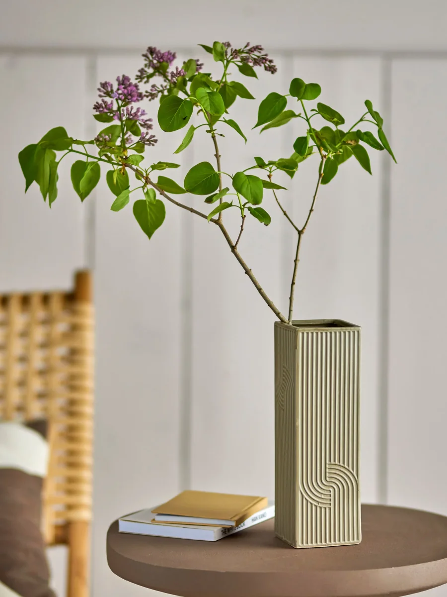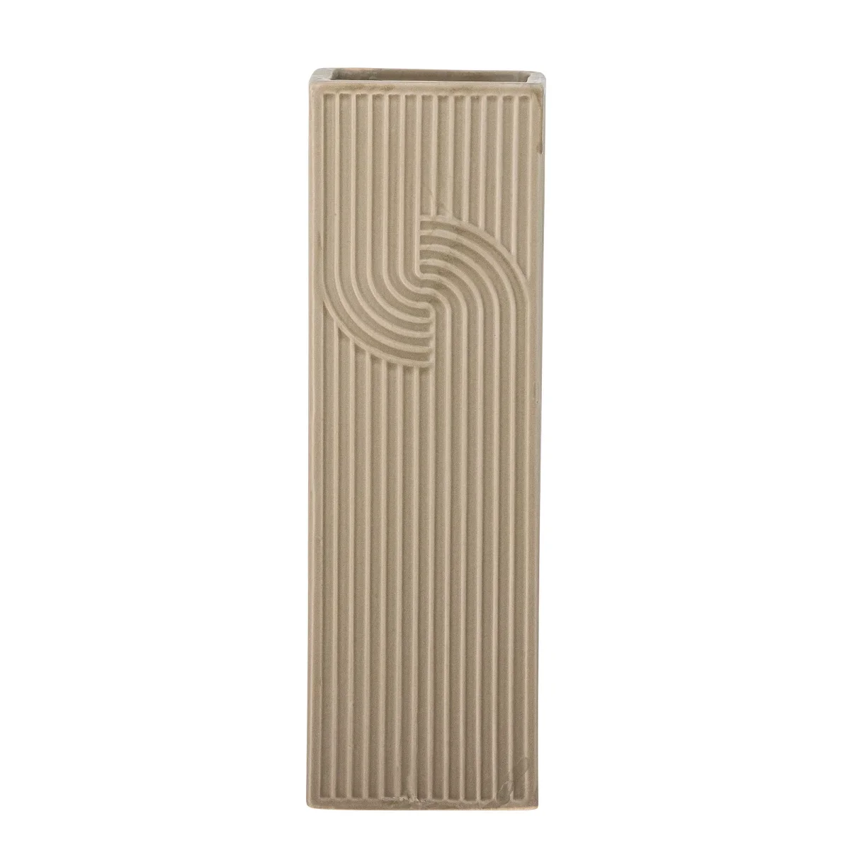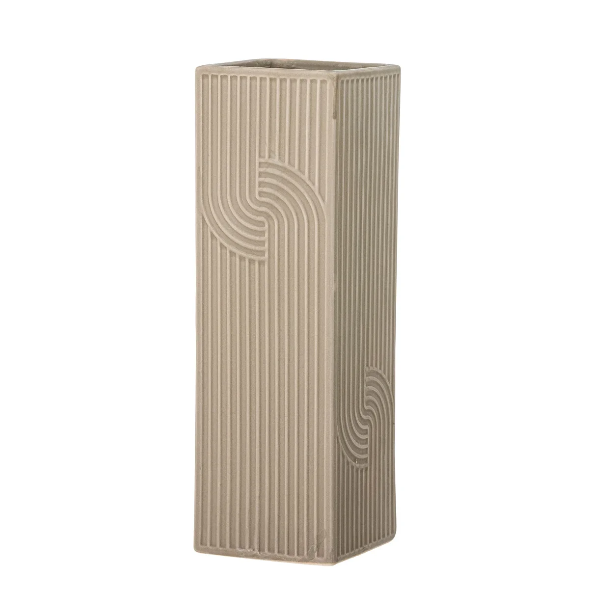 De Heeira Vaas van Bloomingville gemaakt van bruin steengoed in een vierkant design met een prachtig grafisch patroon.