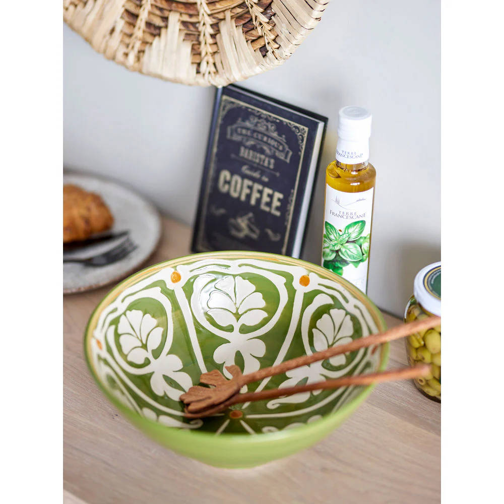 De Heikki Bowl van Bloomingville is een prachtige schaal met een handgeschilderd patroon in lichte en groene tinten. Het fijne vakmanschap maakt elke kom uniek en voegt een gezellige en rustieke sfeer toe aan uw tafelaankleding. Elke kom zal uniek zijn omdat elke penseelstreek een persoonlijk tintje toevoegt en een variatie in het ontwerp creƫert.