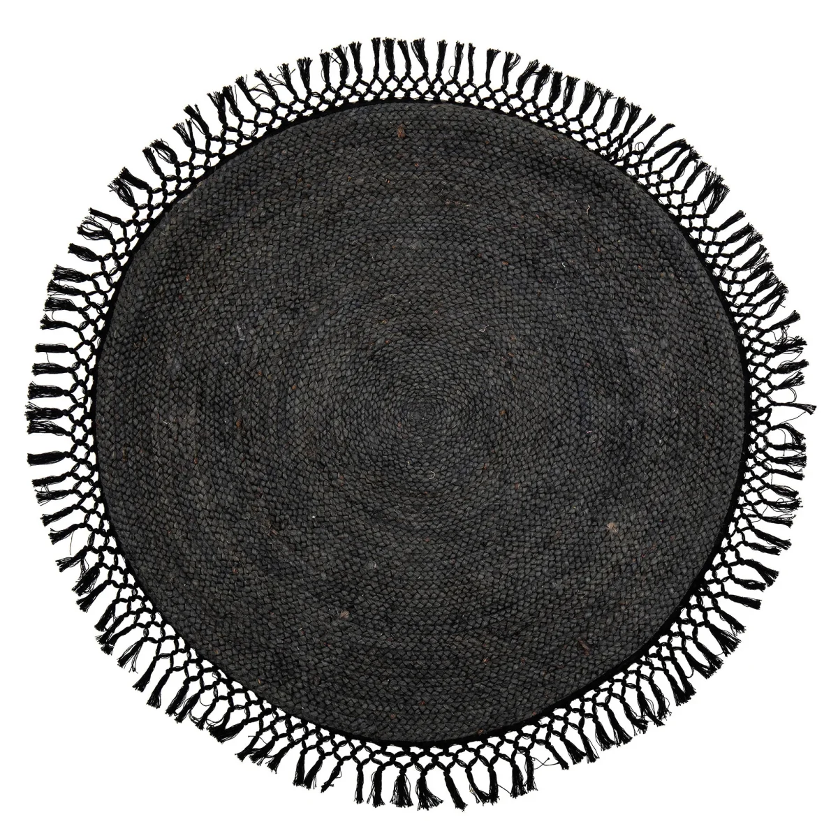 Rond vloerkleed van zwarte jute om gezelligheid te creƫren in elke kamer van het huis. Doorsnede 122 cm.