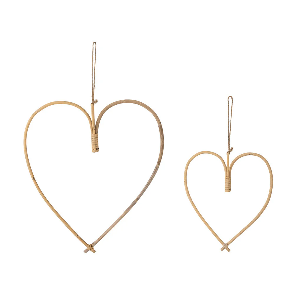De Karima Ornaments van Bloomingville zijn een set van twee fijne kerstversieringen. Ze zijn gemaakt van rotan en hebben de vorm van twee harten in verschillende maten. Perfect als je een natuurlijke en eenvoudige uitstraling in huis wilt.