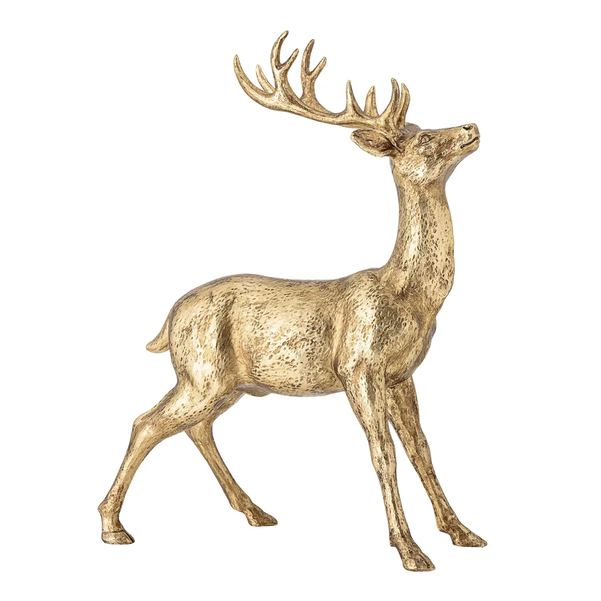 Keera Deer van Bloomingville is perfect voor elke kerstdecoratie. Het is gemaakt van polyresin in een prachtige goudlook. Stijl met kleine decoratieve boompjes en kandelaars op de vensterbank.