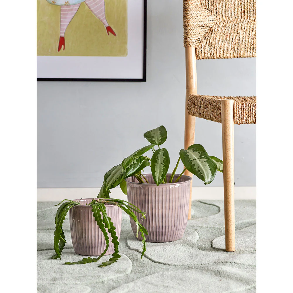 De Kenzie Flowerpots van Bloomingville is een set bestaande uit twee bloempotten in verschillende maten. Beide potten zijn voorzien van een prachtig geribbeld patroon, wat textuur en diepte toevoegt. De transparant roze lak geeft de set een werkelijk unieke uitstraling.