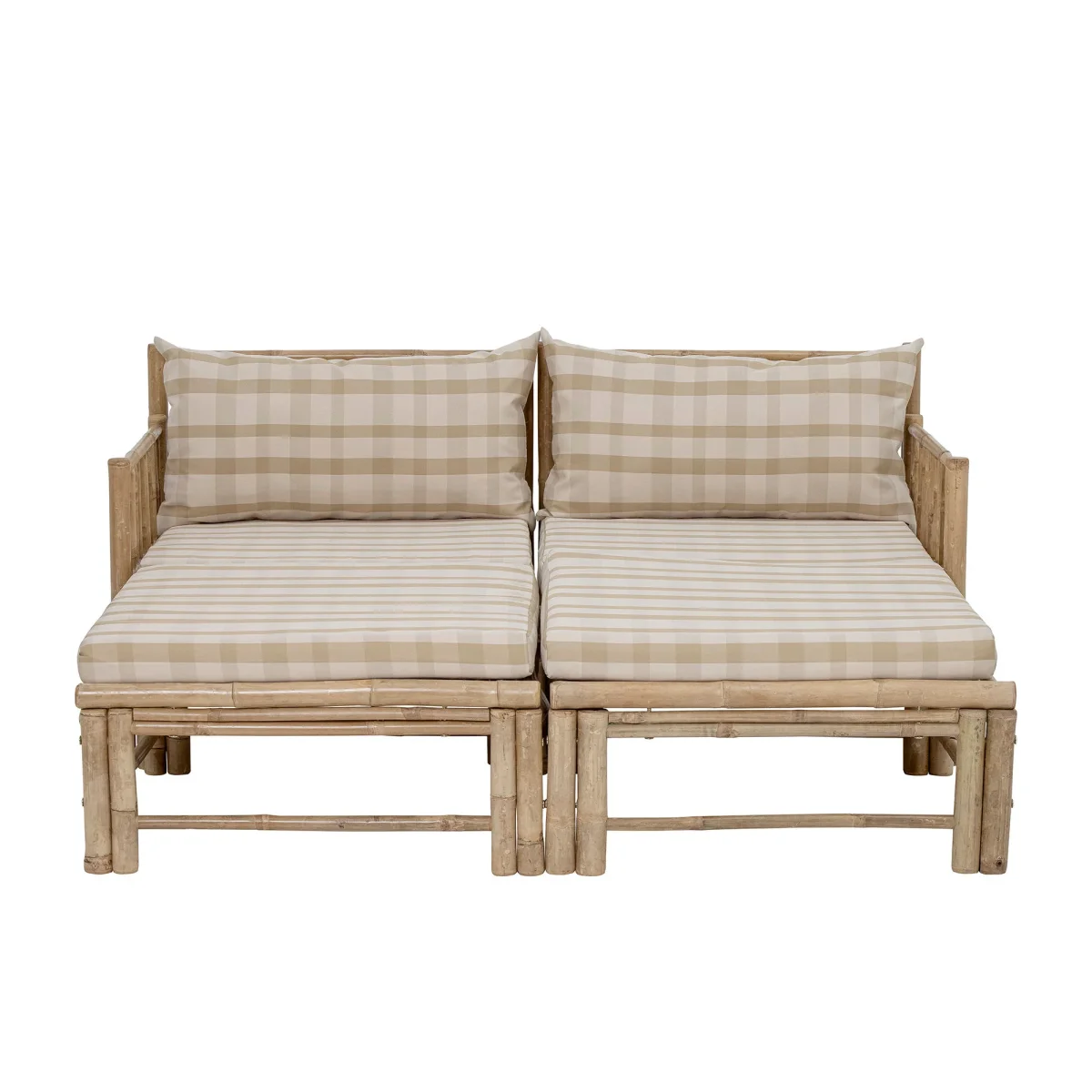De Korfu Module Poef van Bloomingville maakt deel uit van de Korfu serie waar je de modules kunt mixen en matchen en je eigen buitenbank kunt maken op basis van jouw behoeften! De serie is gemaakt van bamboe om het organische, gezellige en huiselijke gevoel van het natuurlijke materiaal te bereiken. Het design is geweldig met een scandinavisch tintje met kussens van polyester in prachtige zachte kleuren. De modules zijn eenvoudig te monteren met klittenband bij elke module. Perfect voor op het terras, de tuin of een kleine oranjerie. De Korfu meubelen worden geleverd met zowel een geruite als een effen hoes, deze zijn eenvoudig naar wens te verwisselen. Jij bent de ontwerper…