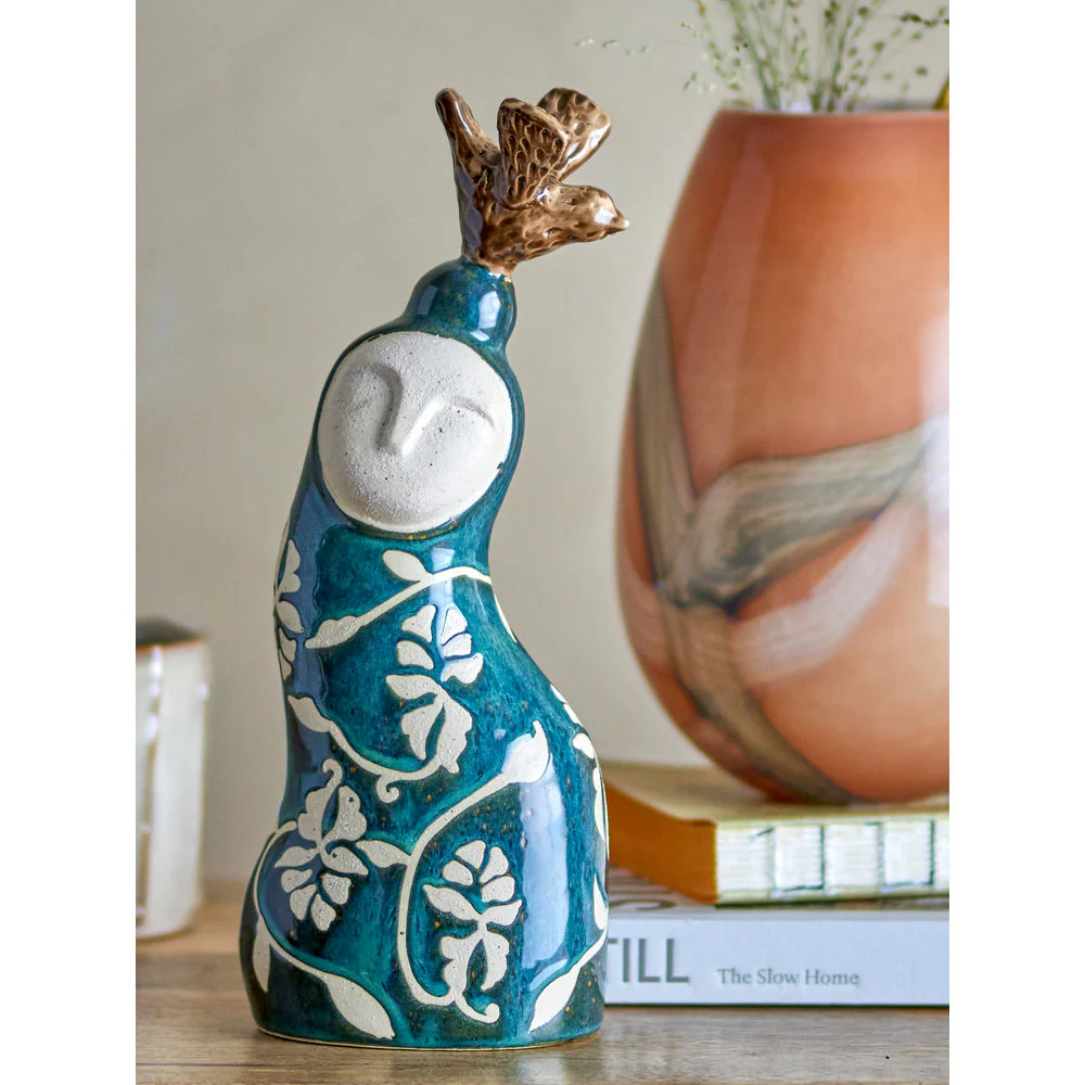 De Layhan Deco van Bloomingville is een decoratief steengoedfiguur die opvalt door zijn ingewikkelde patroon en glanzende donkerblauwe glazuur. Door de aard van het glazuur kunnen de tinten variƫren, waardoor elk stuk uniek is.