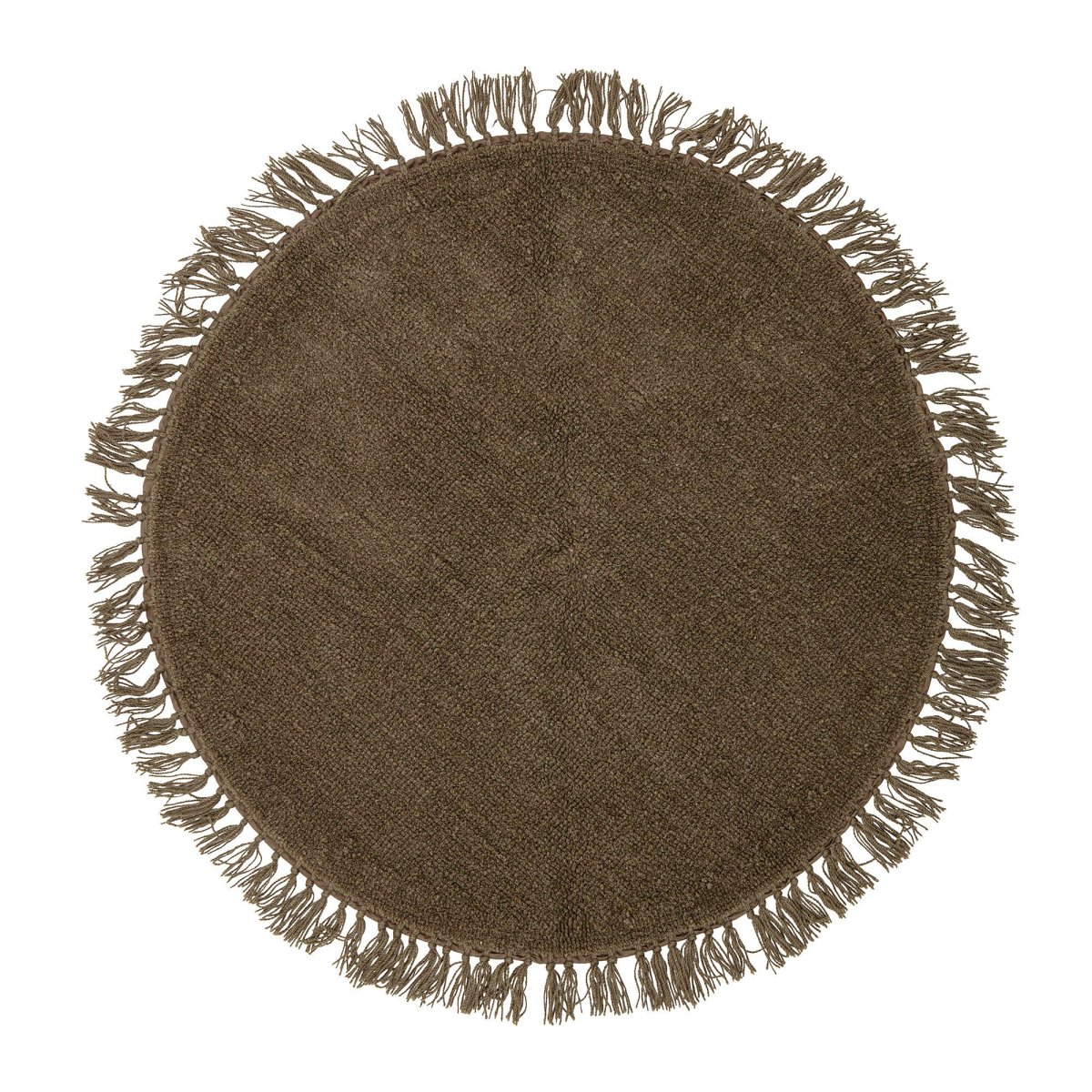 De Lenea Rug van Bloomingville is een zacht rond vloerkleed gemaakt van 100% wol met kleine franjes rond de rand. Het ontwerp is prachtig in een groene kleur, perfect in elke kamer voor een gezellig en tijdloos accessoire.