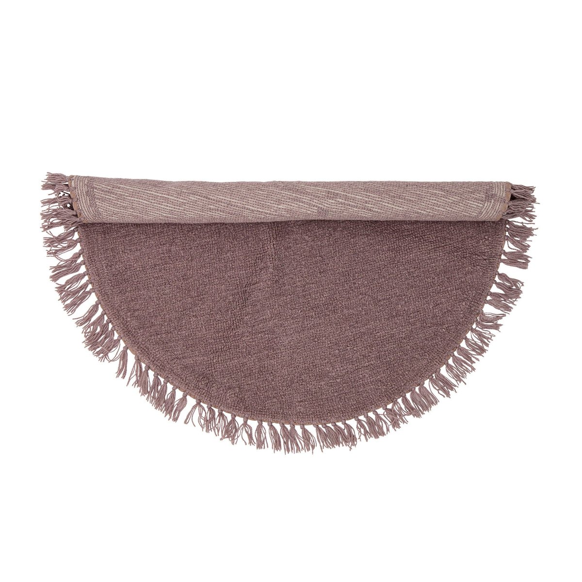 De Lenea Rug van Bloomingville is een zacht rond vloerkleed gemaakt van 100% wol met kleine franjes rond de rand. Het design is prachtig in een stoffige paarse kleur, perfect in elke kamer voor een gezellig en tijdloos accessoire.