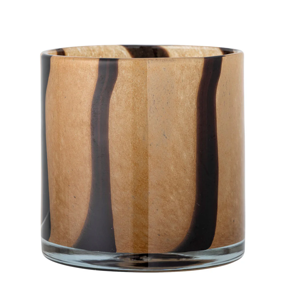 De Liberty Votive van Bloomingville is een prachtige votief in een warme bruine tint met strepen. De votief kan ook als klein vaasje gebruikt worden. De mondgeblazen techniek kan luchtbellen en kleurvariaties achterlaten, die deel uitmaken van de charme.