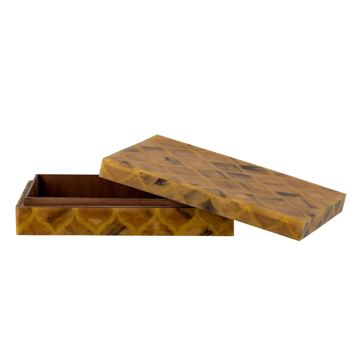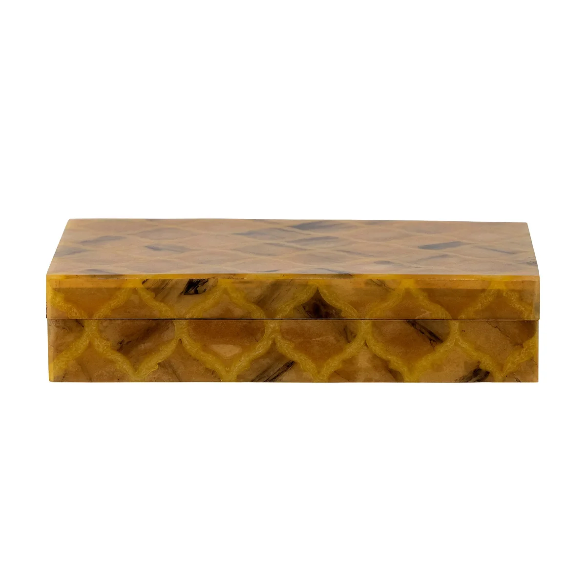 De Limon Resin Box van Bloomingville is zowel mooi als decoratief. Het kan zowel gebruikt worden voor het opbergen van kleine spullen als gewoon als decoratie voor in huis. De doos is versierd met een prachtig grafisch patroon in oranje tinten. Het is gemaakt van hars, wat zorgt voor een glad oppervlak en een zachte aanraking.