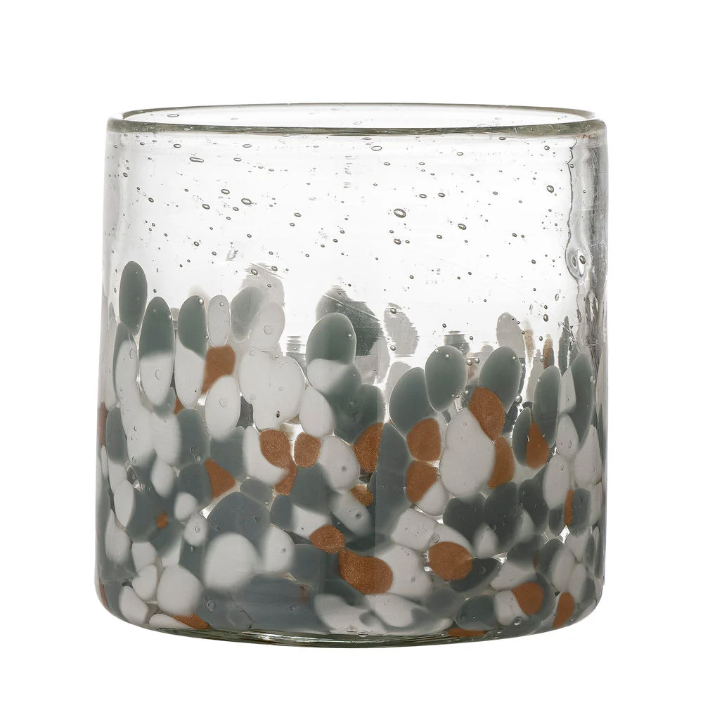 De Vidia Votief van Bloomingville is een prachtige, handgemaakte votief van glas, met een bijzonder patroon van stippen in veelkleurige kleuren. Plaats een theelichtje erin om een warme, lichte glans in de kamer te creƫren. De votief is op zichzelf ook heel decoratief en geeft een persoonlijk tintje aan de woning. De mondgeblazen techniek kan luchtbellen en variaties in kleuren achterlaten, als onderdeel van de charme.