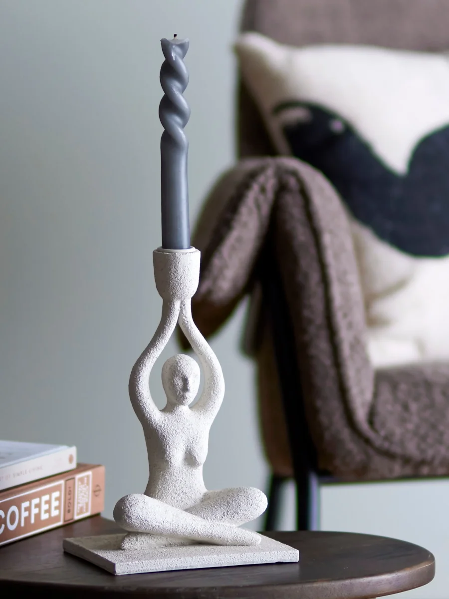 De Lucie Candlestick van Bloomingville is een delicate kandelaar in polyresin. Het stelt een vrouw voor die yoga doet en is ook prachtig als decoratie. Het heeft een ruw oppervlak en is gemakkelijk te combineren met andere decoraties.