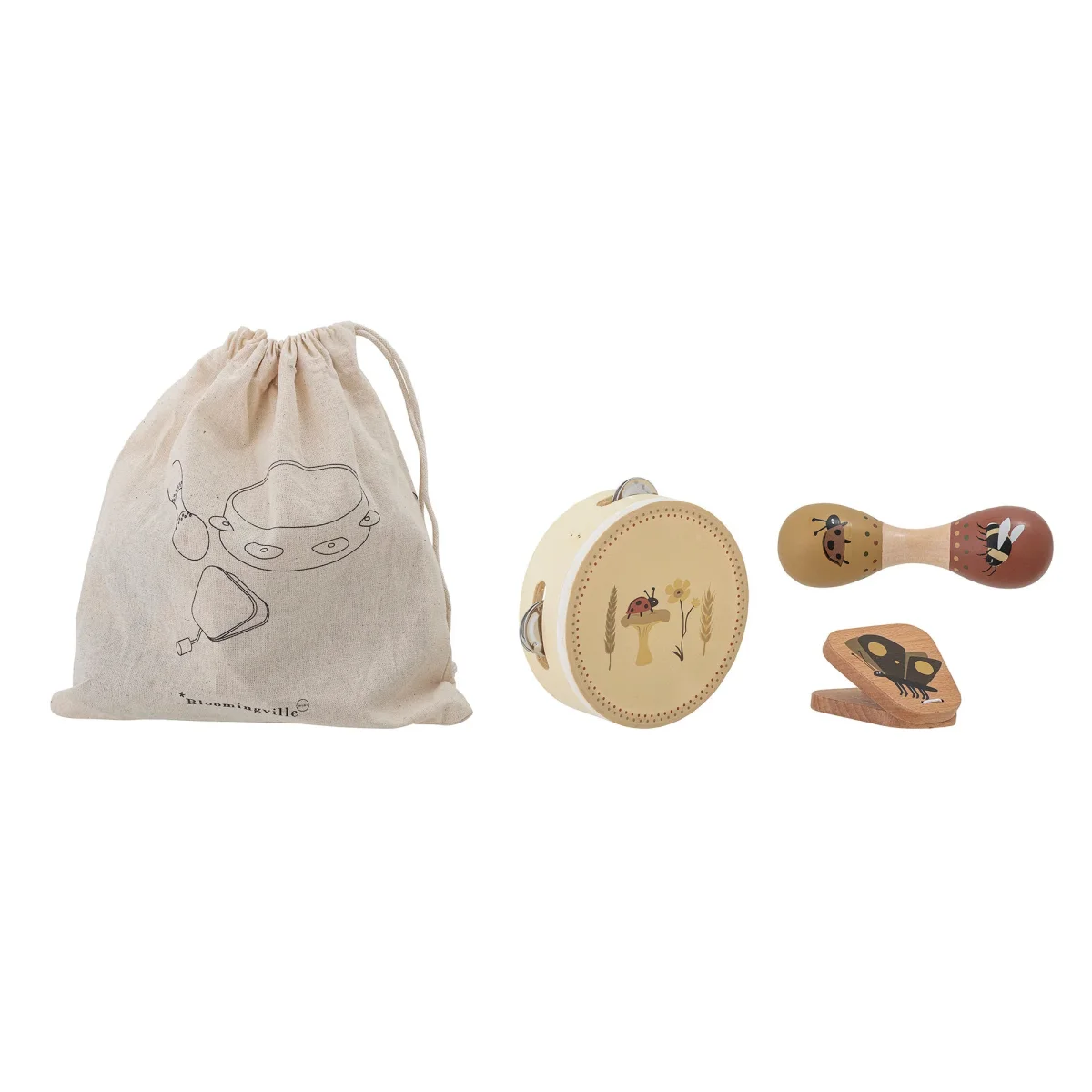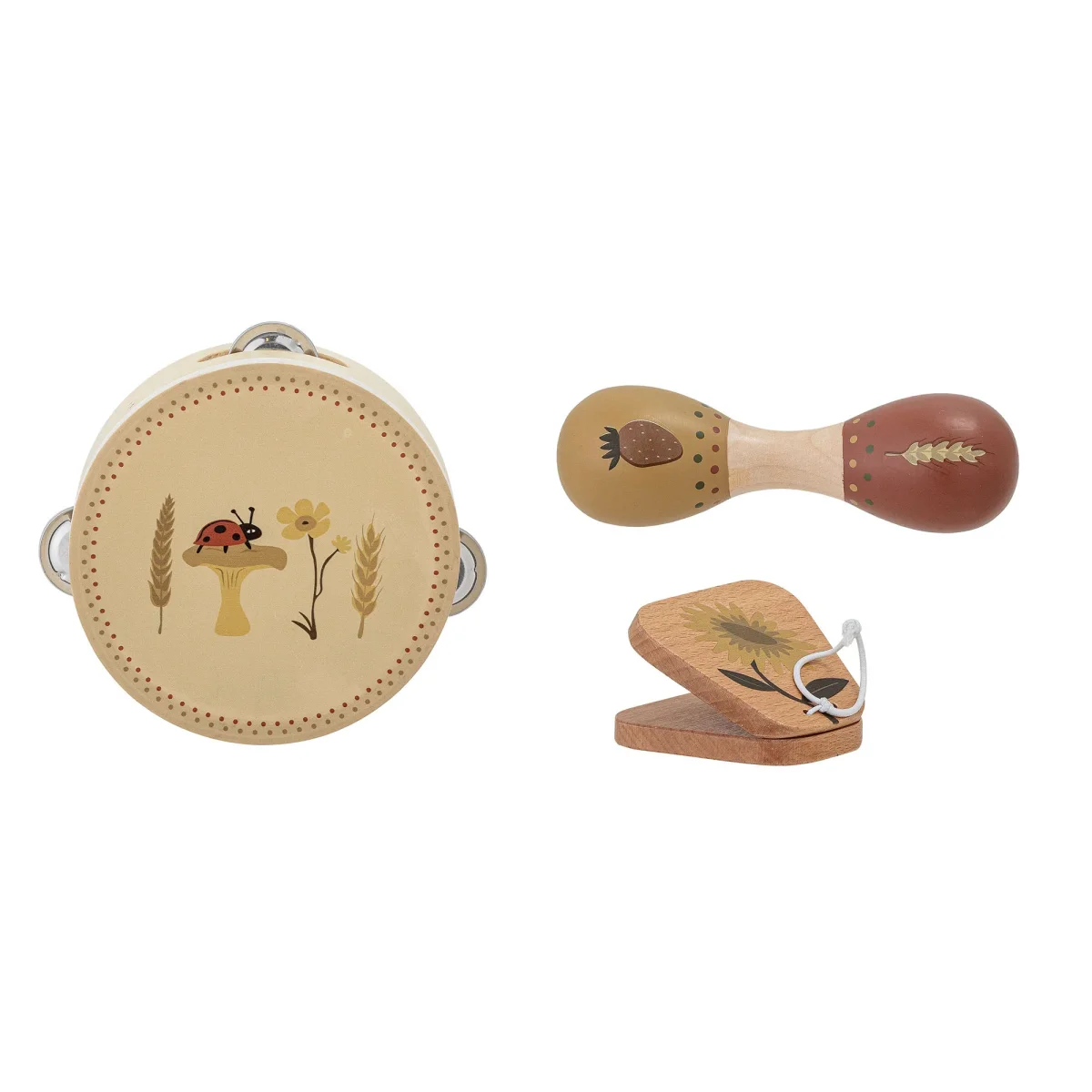Het Driss muziekinstrument van Bloomingville MINI is een set van 3 geweldige percussie-instrumenten. De muziekinstrumenten hebben een lieflijk zomers patroon en zullen zeker een glimlach in huis toveren. De instrumenten zijn zeer decoratief en functioneel tegelijk en passen in ieder kinderhuis.