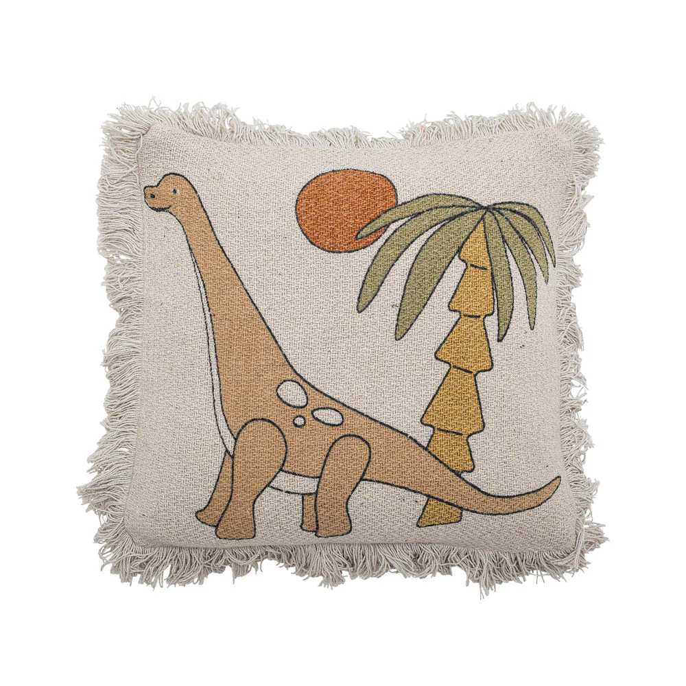 Het Lupo Cushion By Bloomingville MINI is gemaakt van gerecycled katoen in een natuurlijke witte kleur met een schattige dinosaurus- en palmboomprint. Het is een geweldige manier om wat persoonlijkheid en diepte aan je woonruimte toe te voegen.