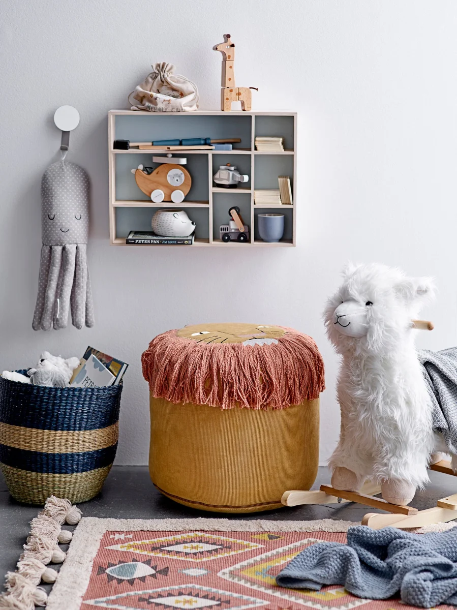 De Lutz Rug van Bloomingville MINI is een getuft vloerkleed in prachtige kleuren met geometrische patronen en trendy kwastjes aan beide uiteinden. De hoge pool en het dikke weefsel houden kleine voetjes warm tijdens urenlang speelplezier.
