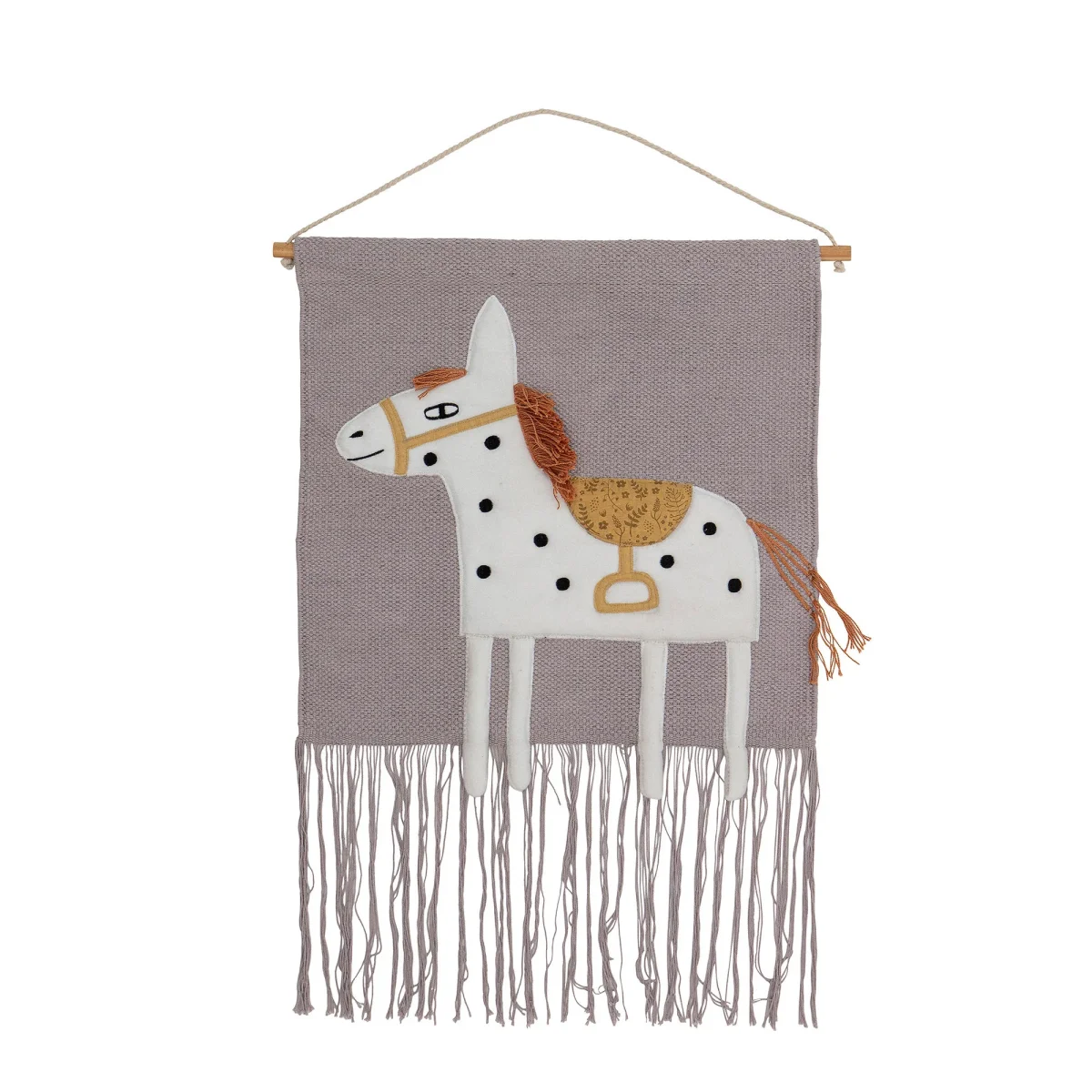 De Lysse Wall Decor van Bloomingville MINI is een lieve wanddecoratie met franjes in een prachtige paarse kleur. De decoratie is handgemaakt met een aangebracht patroon van een paardje. Ideaal om sfeer en vrolijkheid te creƫren in de kinderkamer.