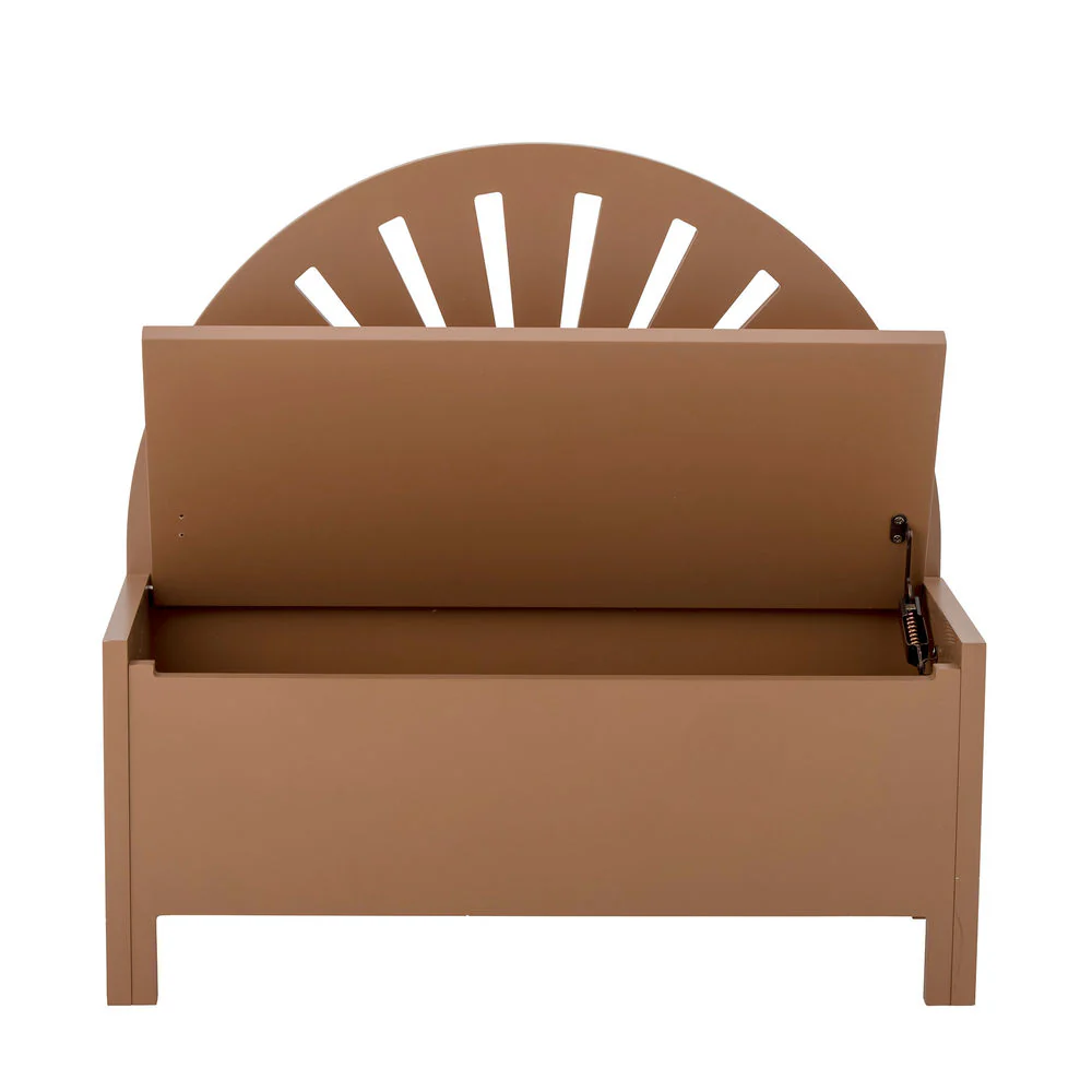 De Marisol Bench van Bloomingville MINI is een heerlijke mix van functie en esthetiek. Geïnspireerd door de zonnestralen presenteert de bank zich in een diepe, mooie bruine tint, die warmte en karakter in elke kamer brengt. Hij beschikt over een soft-close-mechanisme, dat ervoor zorgt dat het opbergvak onder de zitting zachtjes sluit, waardoor hij perfect is voor het opbergen van speelgoed en knuffels. Met zijn voortreffelijke design valt de bank op, of hij nu in de kinderkamer of in de woonkamer wordt geplaatst.