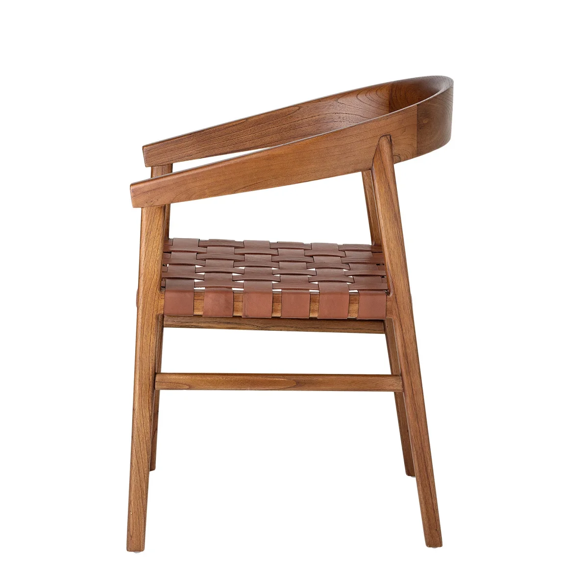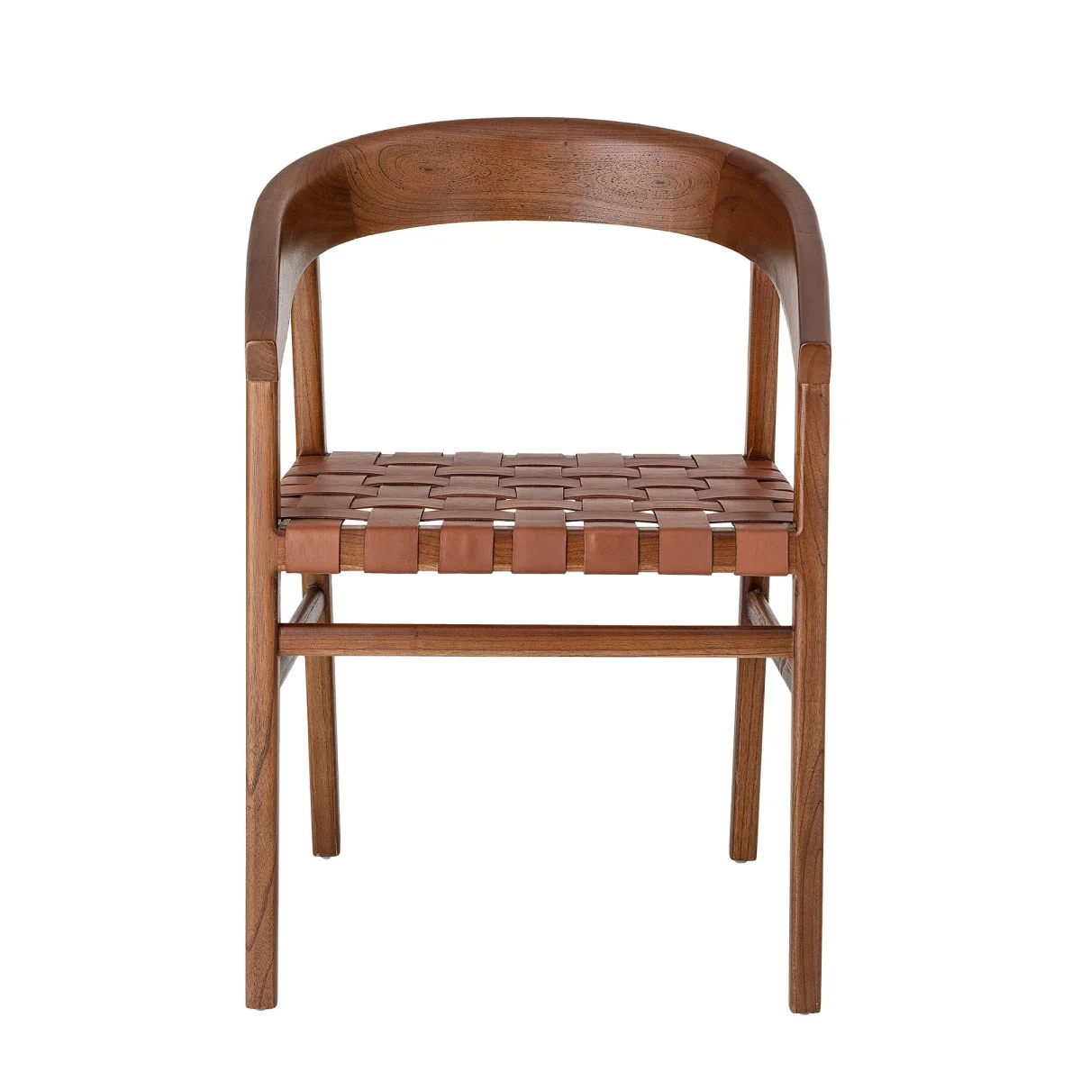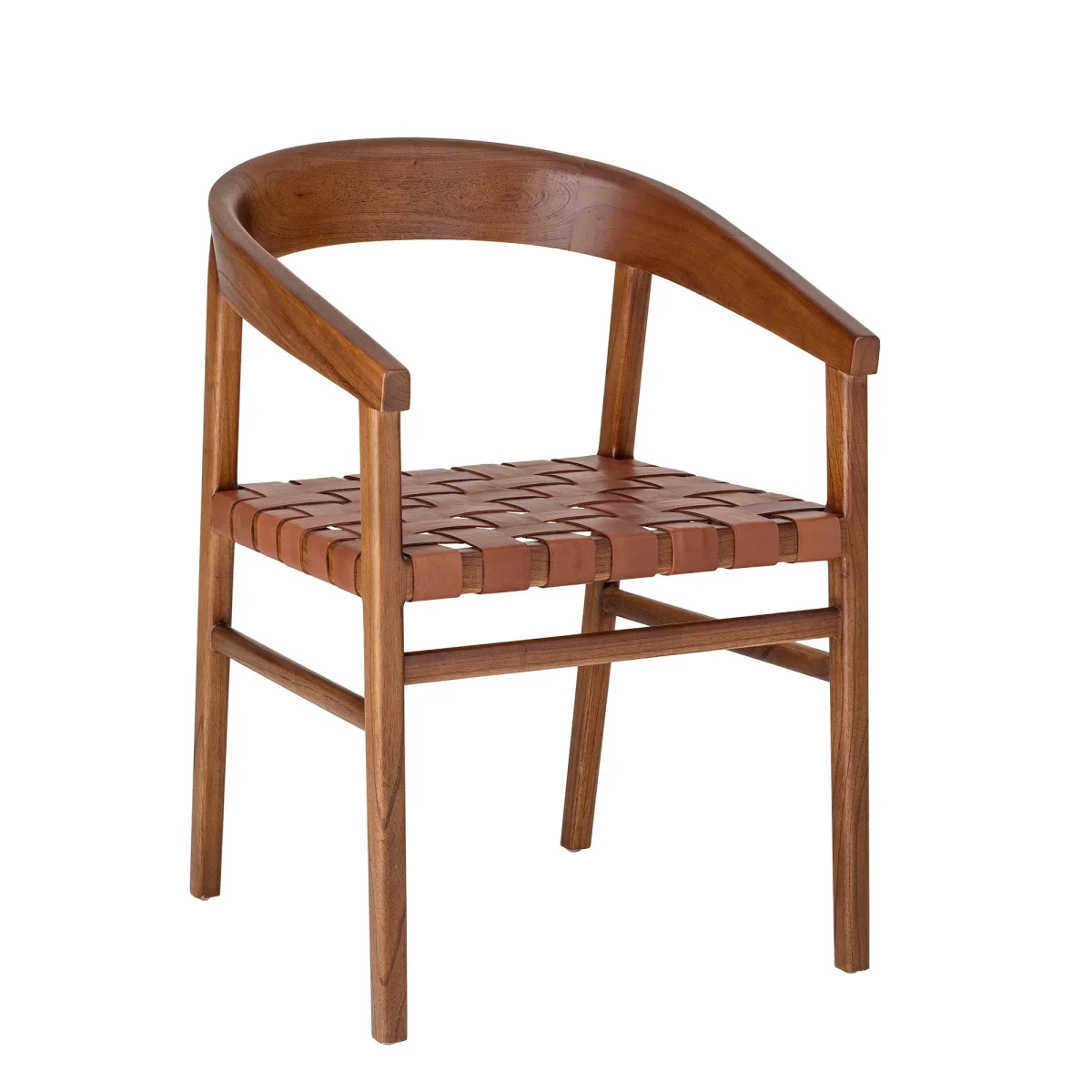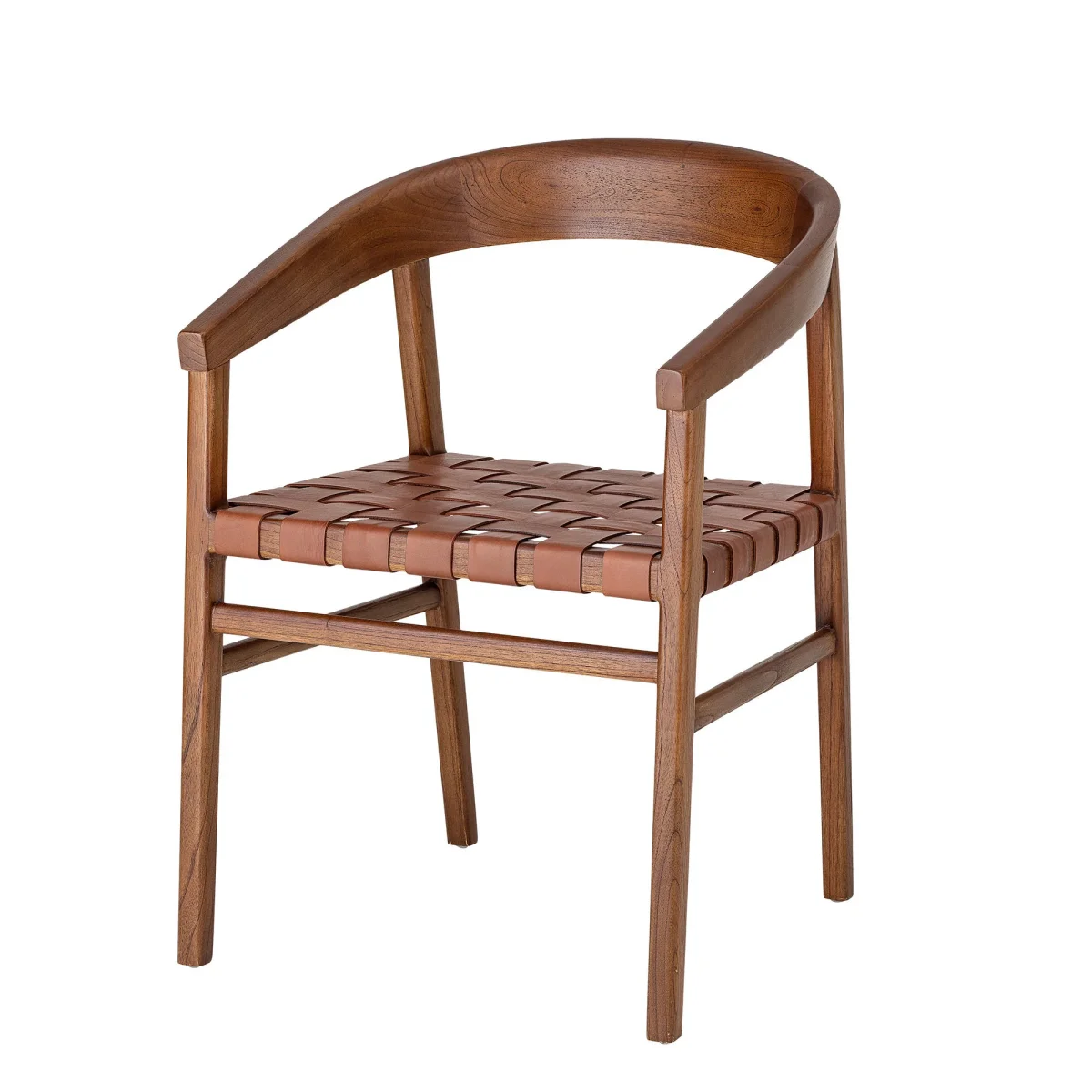 Neem plaats in deze comfortabele Vitus eetkamerstoel van Bloomingville. Hij is gemaakt van Mindi hout en de zitting is van leer. De stoel heeft een prachtig Scandinavisch silhouet.