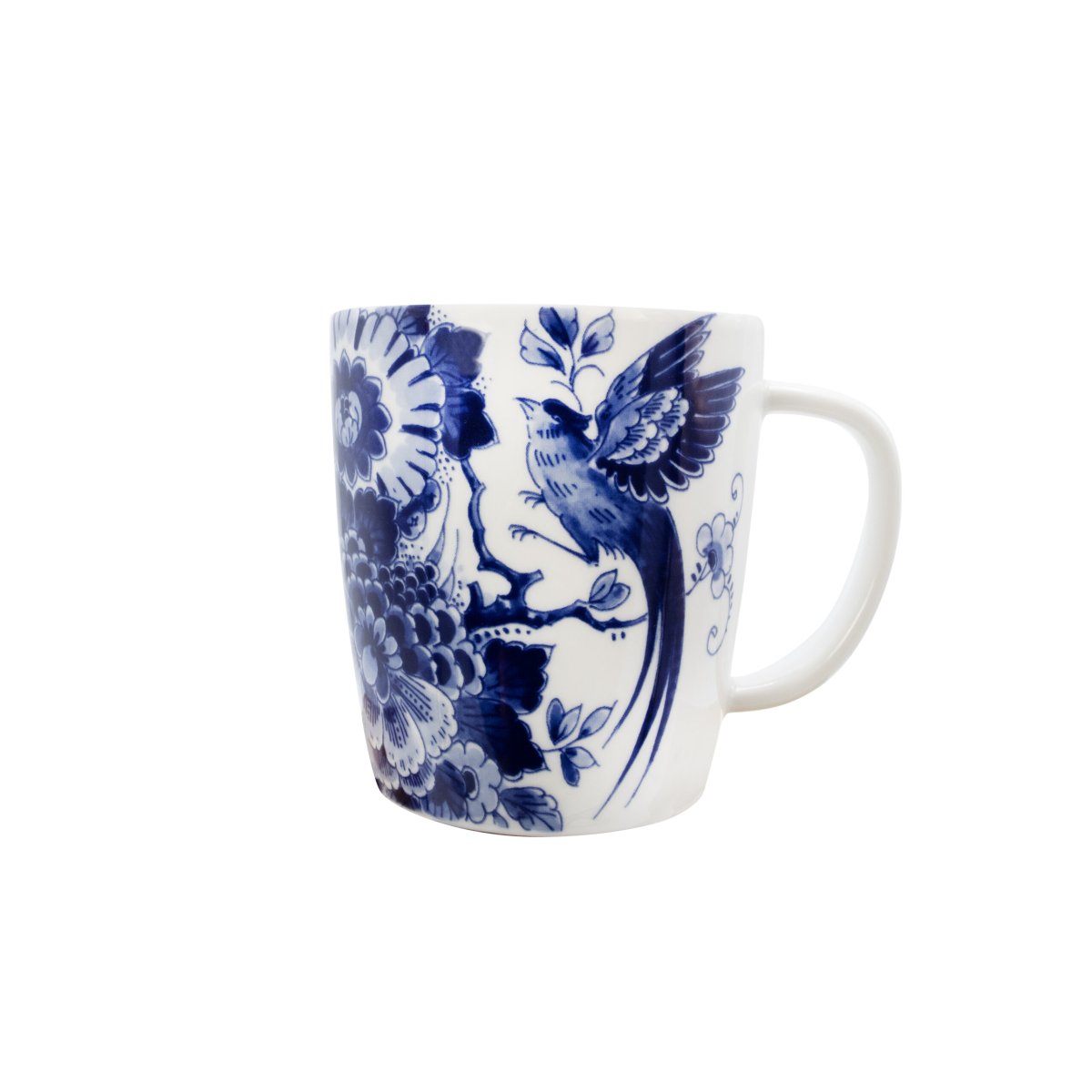 De Blue Master Mug no. 1 Flora & Fauna is geïnspireerd op een traditioneel Delfts Blauw bord versierd met bloemen en vogels.