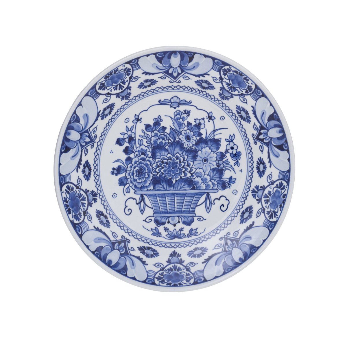 Dit rijk versierde Delfts Blauwe bord is met de hand geschilderd. De strakke lijnen, opgevuld met een grote verscheidenheid aan Delfts Blauw, zijn met uiterste zorg aangebracht door een van onze meesterschilders.
