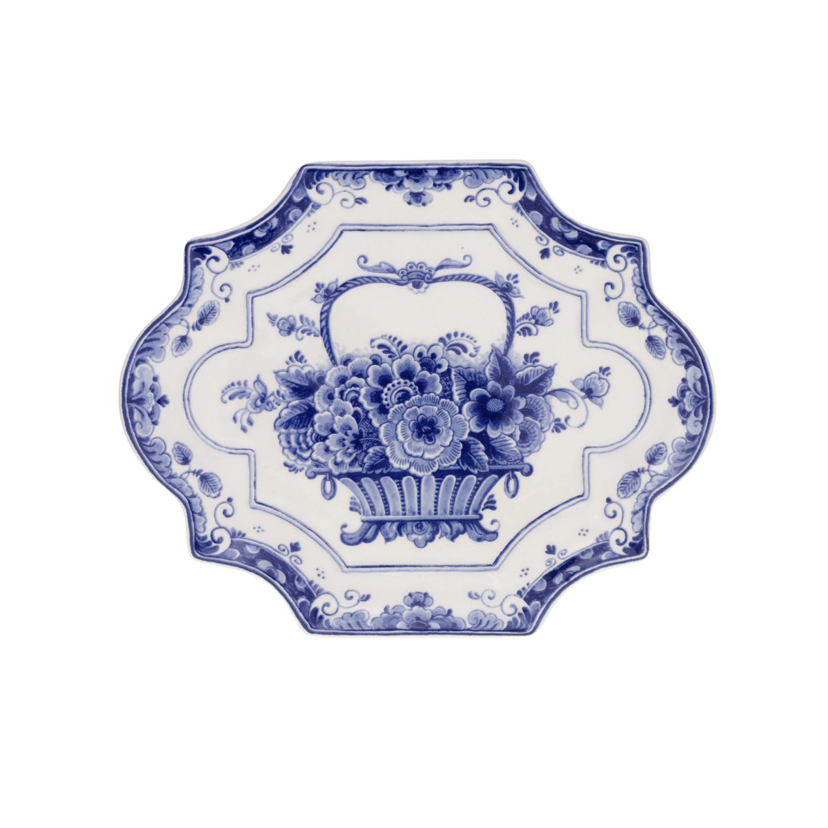 Een prachtig Delfts Blauw bord met diepte en vele tinten Delfts Blauw. De bloemenmand wordt verder benadrukt door de verschillende tinten Delfts Blauw.