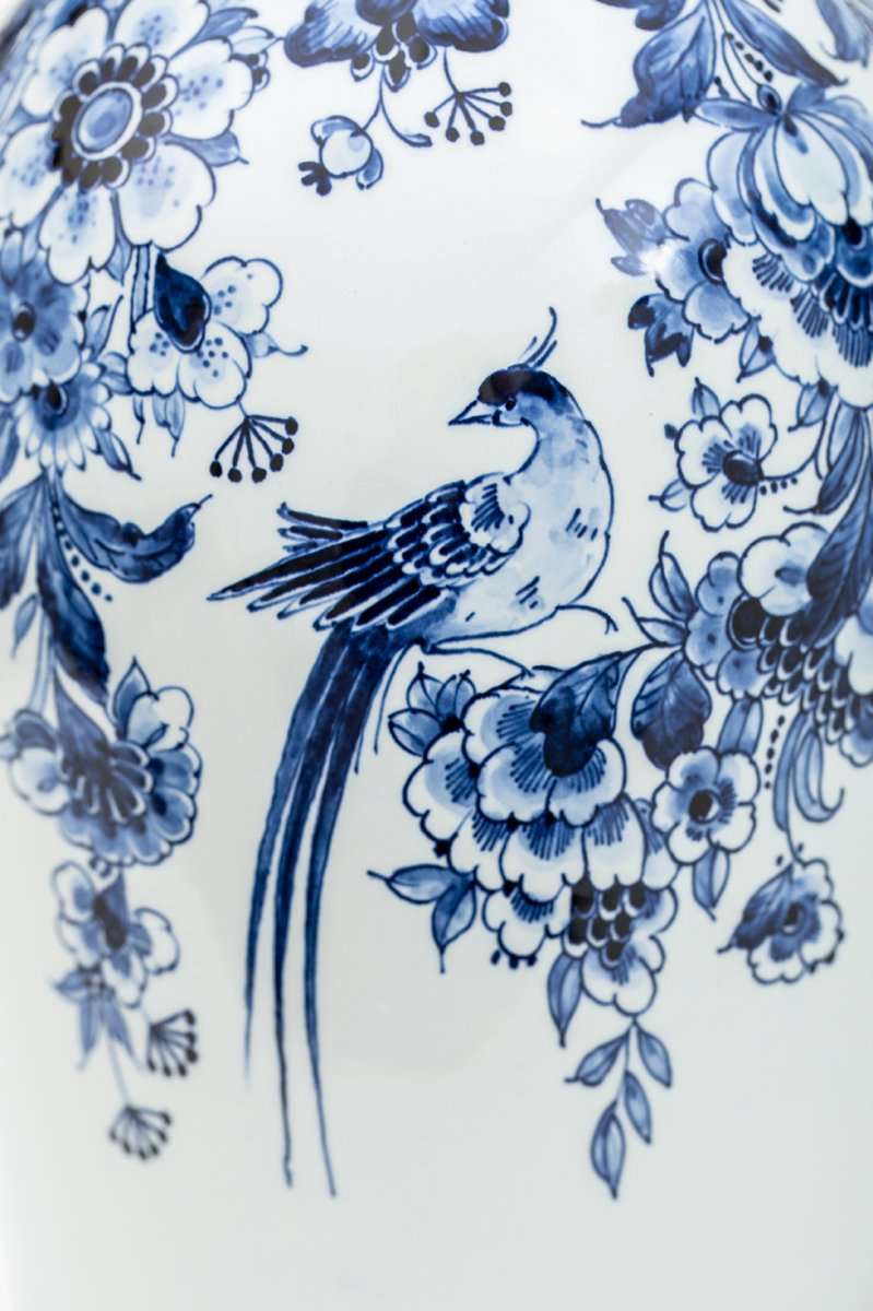 Deze prachtige Delfts Blauwe vaas wordt met de hand gemaakt in onze fabriek in Delft. Van het maken van de mal, het gieten van de klei tot aan het schilderen van deze unieke vaas. Tijdens elke stap van het maak-proces wordt er door de makers van Royal Delft gelet op de details.