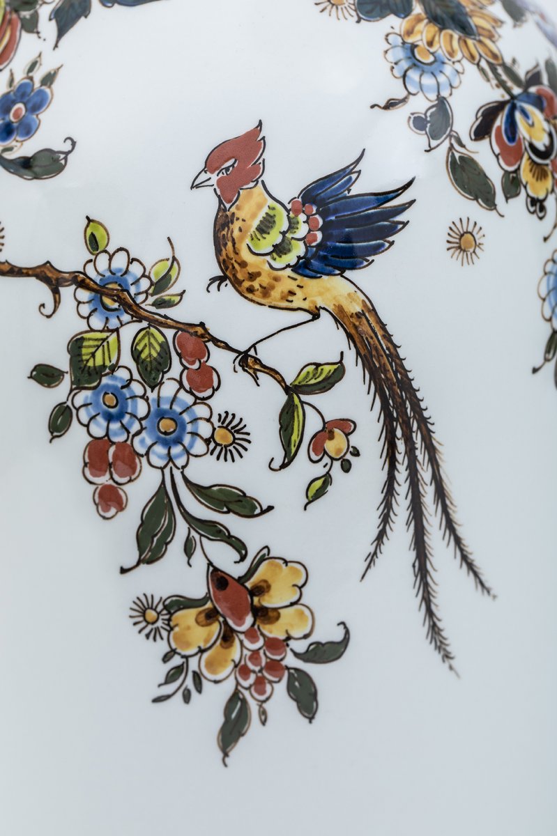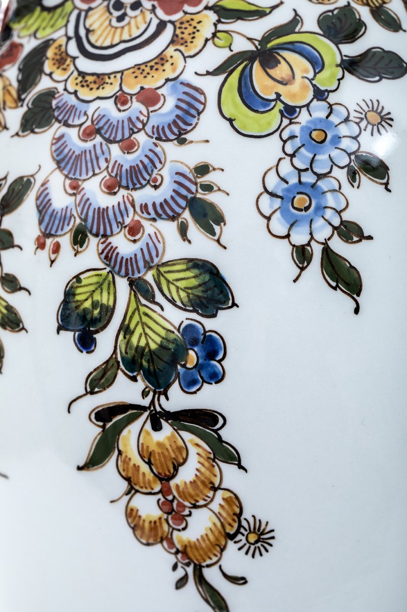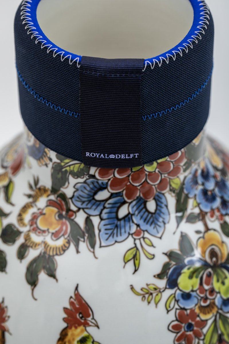 Deze prachtige polychroom vaas wordt met de hand gemaakt in onze fabriek in Delft. Van het maken van de mal, het gieten van de klei tot aan het schilderen van deze uniek vaas. Tijdens elke stap van het maak-proces wordt er door de makers van Royal Delft gelet op de details.