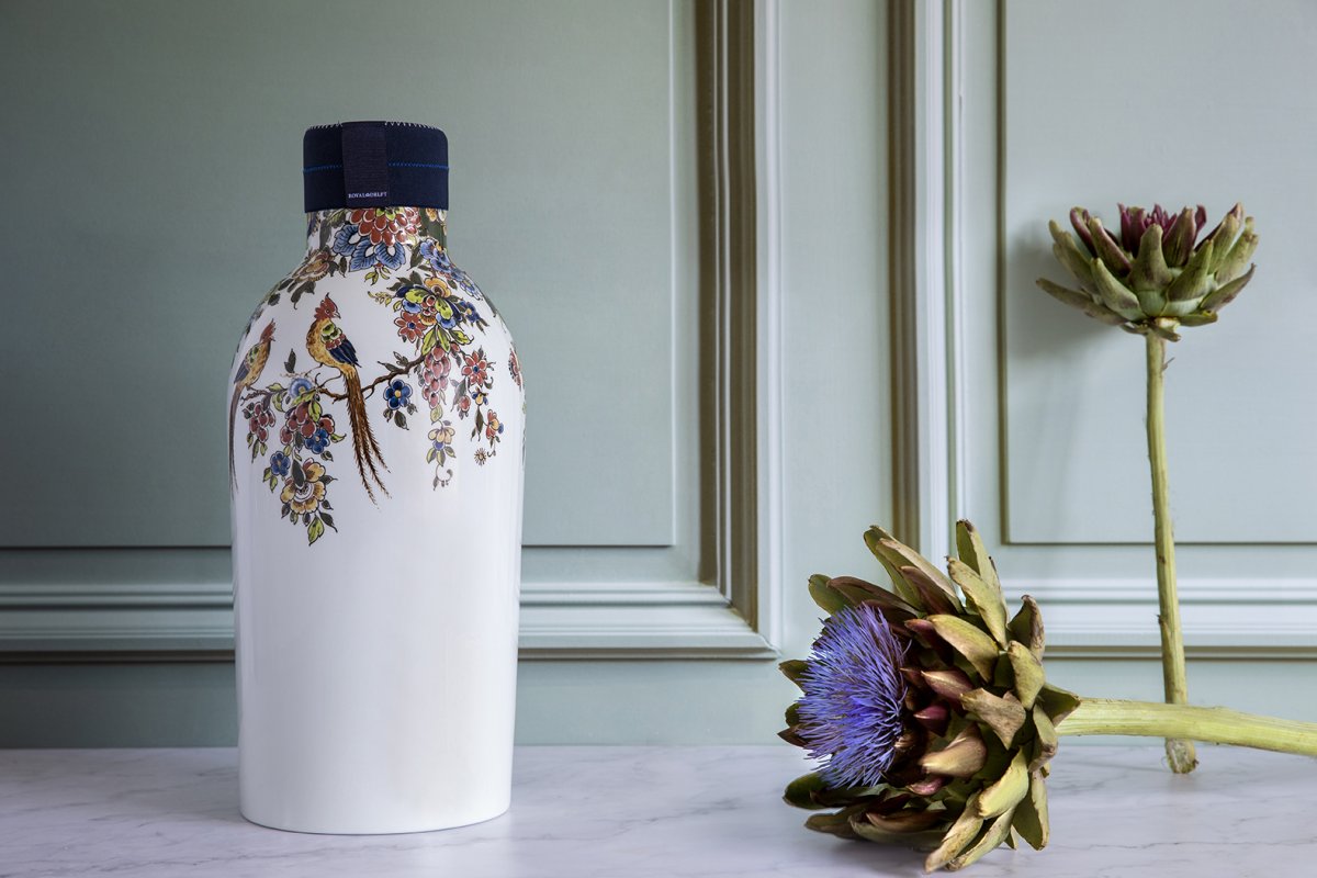 De Collar Bottle is een ontwerp van Arian Brekveld. Het dessin van de Collar Bottle Polychroom Edition komt van de designers en meesterschilders van Royal Delft.