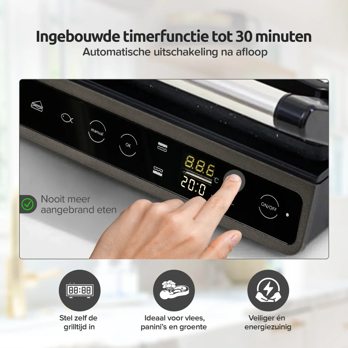- Timerfunctie: nooit meer te lang of te kort grillen.