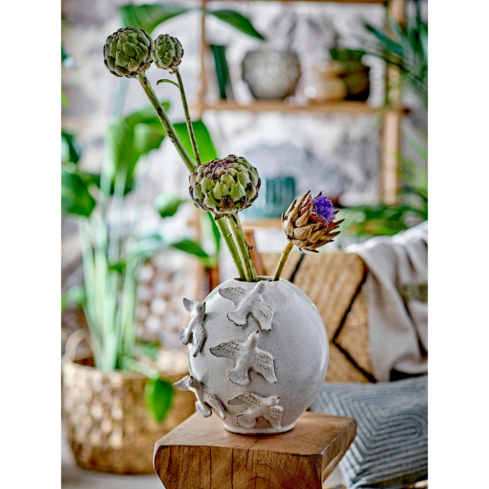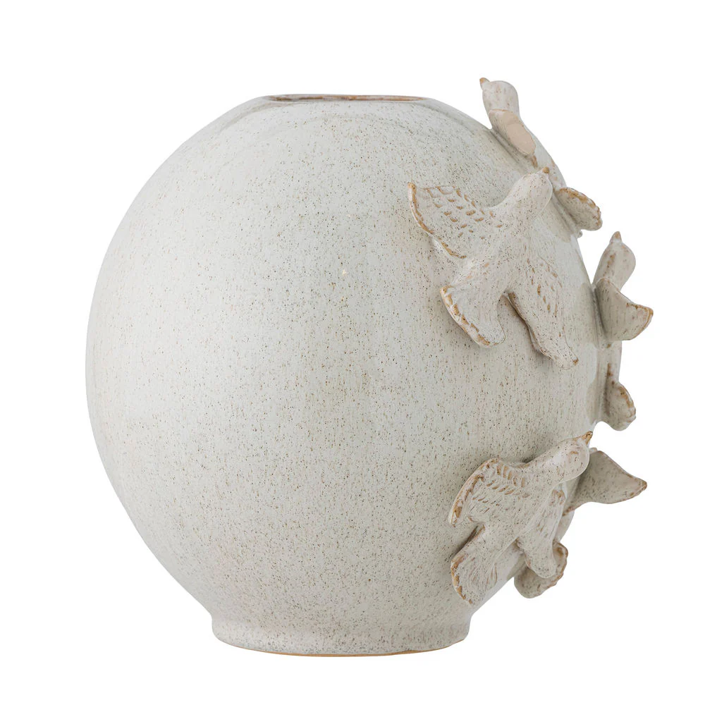 De Abira Vaas van Creative Collection is een prachtige handgemaakte vaas versierd met vogels die over de vaas vliegen. De vaas is gemaakt van steengoed in een lichte kleur. Decoratief en mooi zowel met als zonder bloemen.