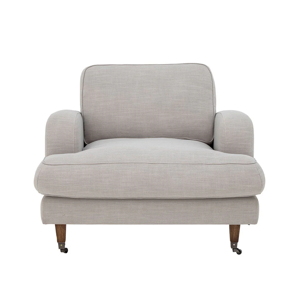 De Augusta Lounge Chair van Creative Collection biedt een mix van elegantie en comfort voor elke woonruimte. Deze gezellige stoel heeft een platgeweven linnenlook in een subtiele natuurlijke tint, gemaakt van 85% polyester en 15% linnen. Hij heeft wieltjes aan de voorpoten, waardoor de Augusta Lounge Chair moeiteloos mobiel en handig is in elke omgeving.