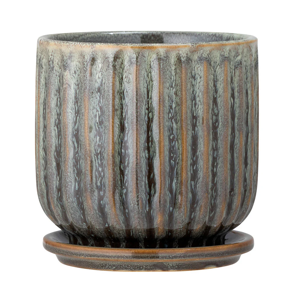 De Drago Bloempot van Creative Collection is handgemaakt van steengoed met een prachtig groen en bruin glazuur. De bloempot wordt geleverd inclusief schotel. Omdat het handgemaakt is en een reactief glazuur heeft, zal elke bloempot variƫren en uniek zijn.