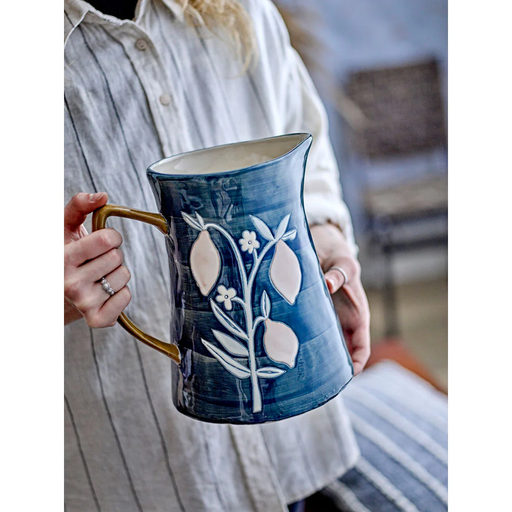 De Feriha Jug van Creative Collection is gemaakt van steengoed en met de hand gedecoreerd. Geschilderd in een diepblauwe kleur met vrolijke bloemmotieven. De kan zal elke eettafel en keukenstijl opfleuren. Gebruik de kan als vaas voor een casual look. Elk stuk is uniek omdat het met de hand is versierd.