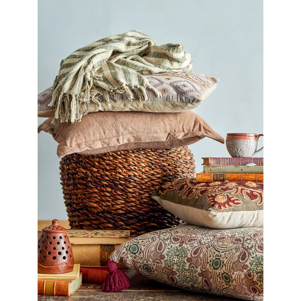 Het Fibi Kussen van Creative Collection is een groot en zacht kussen gemaakt van katoen. Het heeft een paarse tint met kwastjes aan de vier hoeken en een prachtig wowen-patroon. De warme kleur fleurt je favoriete bank of fauteuil op.
