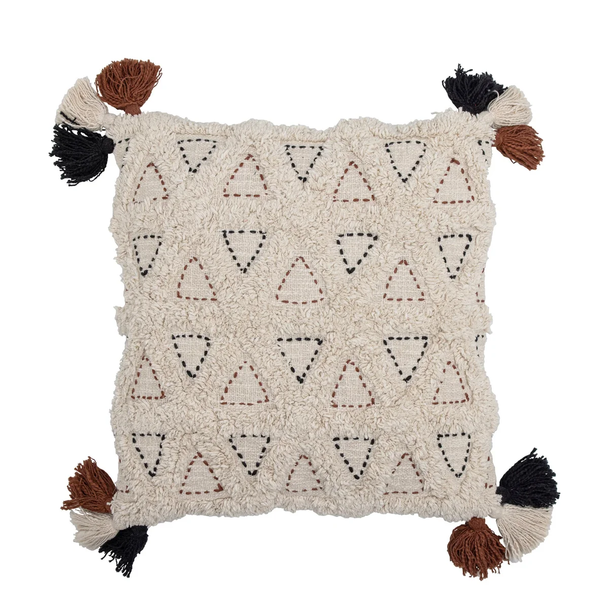 Het Finja Kussen uit Creative Collection is een mooi en zacht kussen gemaakt van 100% katoen. Het heeft een leuk patroon met decoratieve steken, franjes en gekleurde kwastjes aan de uiteinden. Perfect om je favoriete loungestoel nog gezelliger te maken!