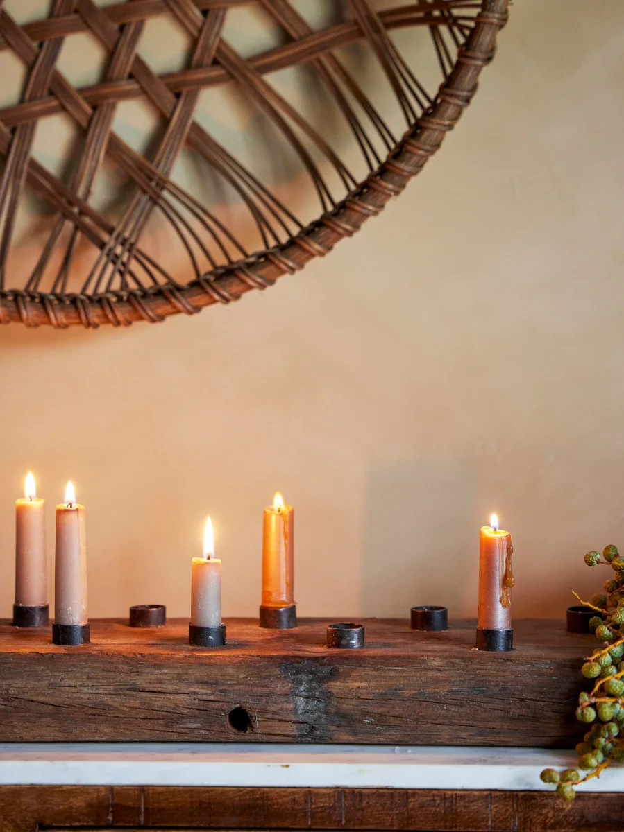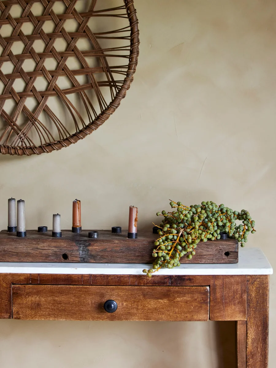 De Hannamai Candle Holder van Creative Collection is een solide en rustieke kandelaar van teruggewonnen hout met 12 houders. Voeg gewoon kaarsen of kleine kaarsstompjes toe aan zoveel houders als je wilt. Hij past perfect op uw consoletafel of als centrale decoratie in uw kersttafelsetting.
