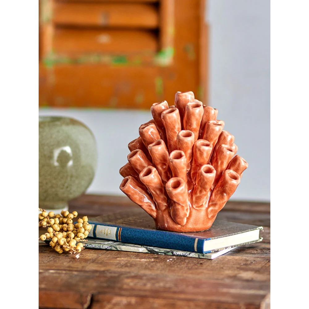 De Shagun Deco van Creative Collection in steengoed is een uniek deco-kunststuk ontworpen met inspiratie van koralen. Hij ziet er prachtig uit op zichzelf of samen met andere woonaccessoires in een stilleven. Omdat het handgemaakt is en een reactief glazuur heeft, is elke stijl uniek.