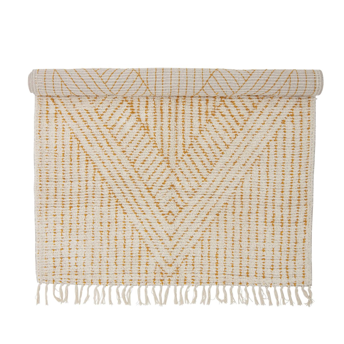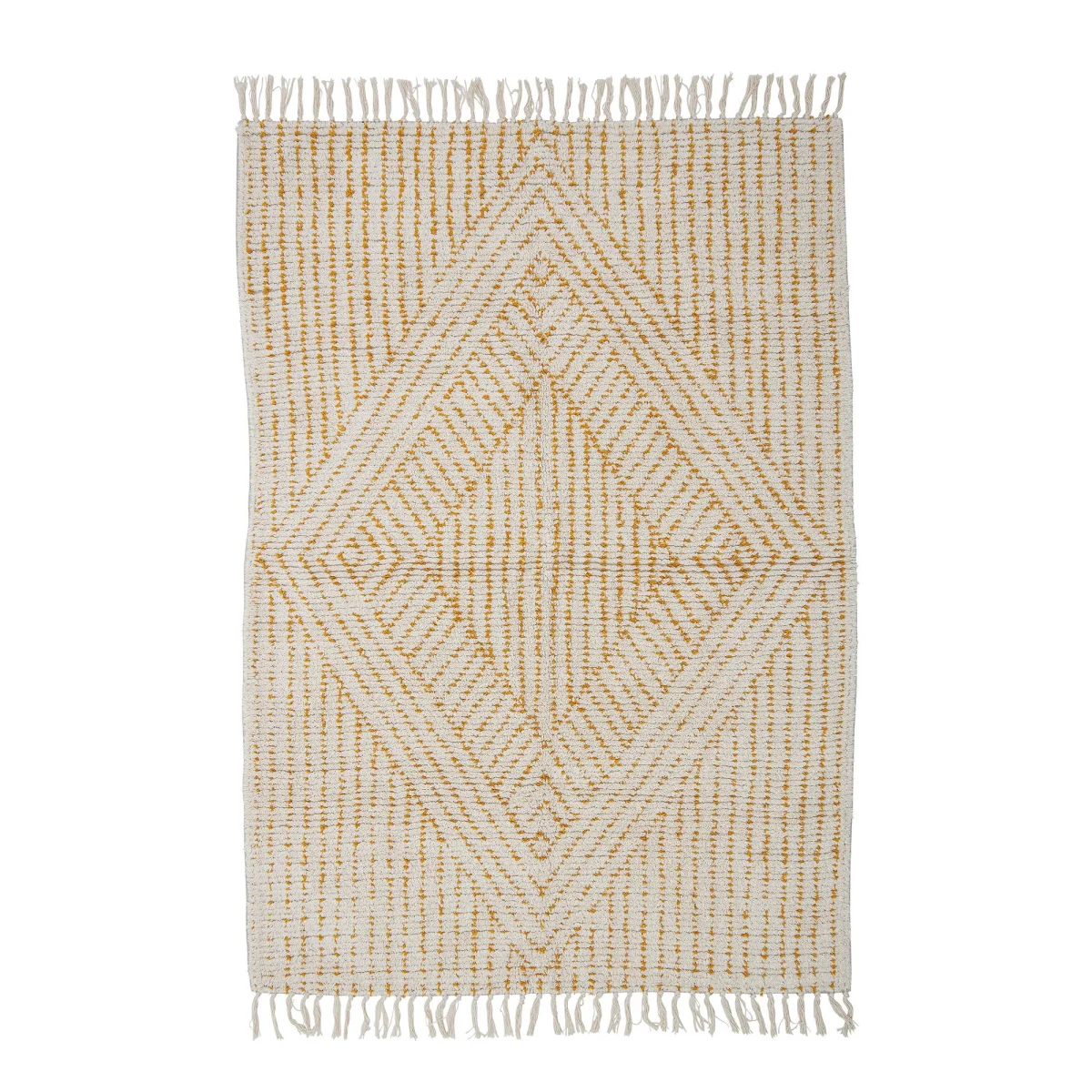 Het Stephi Vloerkleed van Creative Collection is gemaakt van katoen en heeft een prachtige natuurlijke tint die een gezellige sfeer in je interieur brengt. Het vloerkleed is rechthoekig met prachtige gele details en kleine franjes aan elk uiteinde. Het zal ervoor zorgen dat je de hele dag op blote voeten wilt lopen!