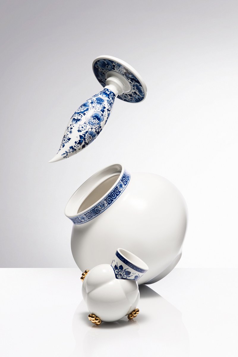 Dit ornament met gouden bloemen is ontworpen door Marcel Wanders en onderdeel van de Moooi x Royal Delft collectie. De collectie bestaat uit interieur objecten met gedurfde vormen, gecombineerd met iconische Delfts Blauwe decoratie. Royal Delft is al geruime tijd fabrikant voor de Delfts Blauwe vazencollectie van Moooi. De vazen uit de Moooi x Royal Delft collectie worden met de handgemaakt in het aterlier in Delft, met oog voor detail en hoge kwaliteit.