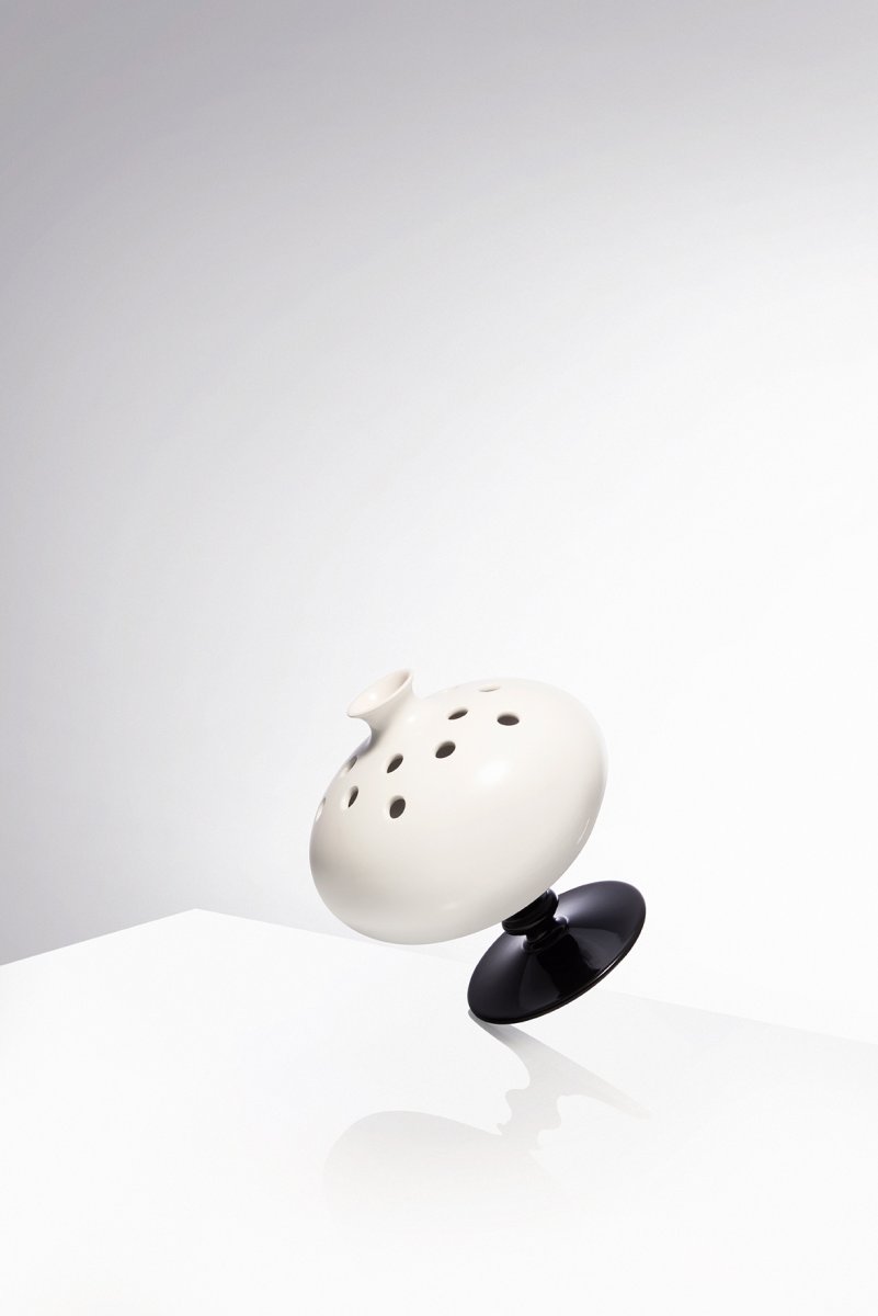 Deze bolle vaas met gaten is ontworpen door Marcel Wanders en onderdeel van de Moooi x Royal Delft collectie. De collectie bestaat uit interieur objecten met gedurfde vormen, gecombineerd met iconische Delfts Blauwe decoratie. Royal Delft is al geruime tijd fabrikant voor de Delfts Blauwe vazencollectie van Moooi. De vazen uit de Moooi x Royal Delft collectie worden met de handgemaakt in het aterlier in Delft, met oog voor detail en hoge kwaliteit.
