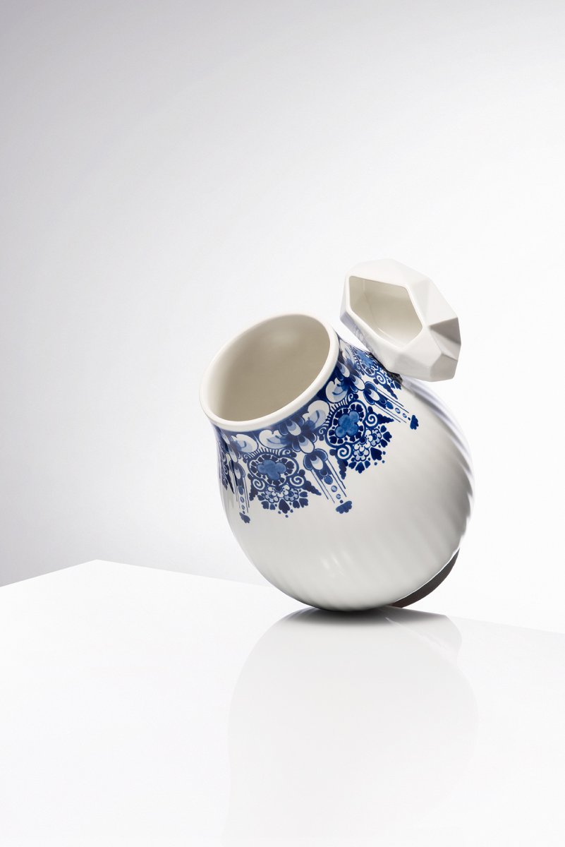 Deze vaas met diamant is ontworpen door Marcel Wanders en onderdeel van de Moooi x Royal Delft collectie. De collectie bestaat uit interieur objecten met gedurfde vormen, gecombineerd met iconische Delfts Blauwe decoratie. Royal Delft is al geruime tijd fabrikant voor de Delfts Blauwe vazencollectie van Moooi. De vazen uit de Moooi x Royal Delft collectie worden met de handgemaakt in het aterlier in Delft, met oog voor detail en hoge kwaliteit.
