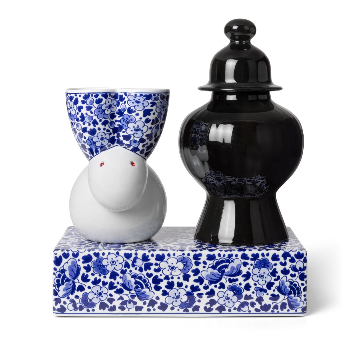 Deze vazen combinatie is ontworpen door Marcel Wanders en onderdeel van de Moooi x Royal Delft collectie. De collectie bestaat uit interieur objecten met gedurfde vormen, gecombineerd met iconische Delfts Blauwe decoratie. Royal Delft is al geruime tijd fabrikant voor de Delfts Blauwe vazencollectie van Moooi. De vazen uit de Moooi x Royal Delft collectie worden met de handgemaakt in het aterlier in Delft, met oog voor detail en hoge kwaliteit.