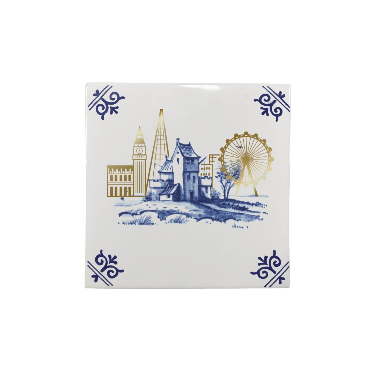 Royal Delft en Delfts Blauwe tegels zijn al eeuwenlang onlosmakelijk met elkaar verbonden. De designers van Royal Delft hebben de originele Delft Blauwe tegels als canvas gebruikt en op een humoristische wijze een vertaling gemaakt naar het hier en nu. Elke tegel heeft een 24 karaats Goud Luster decoratie en vertelt zijn eigen verhaal. Wij zijn benieuwd naar jouw verhaal.