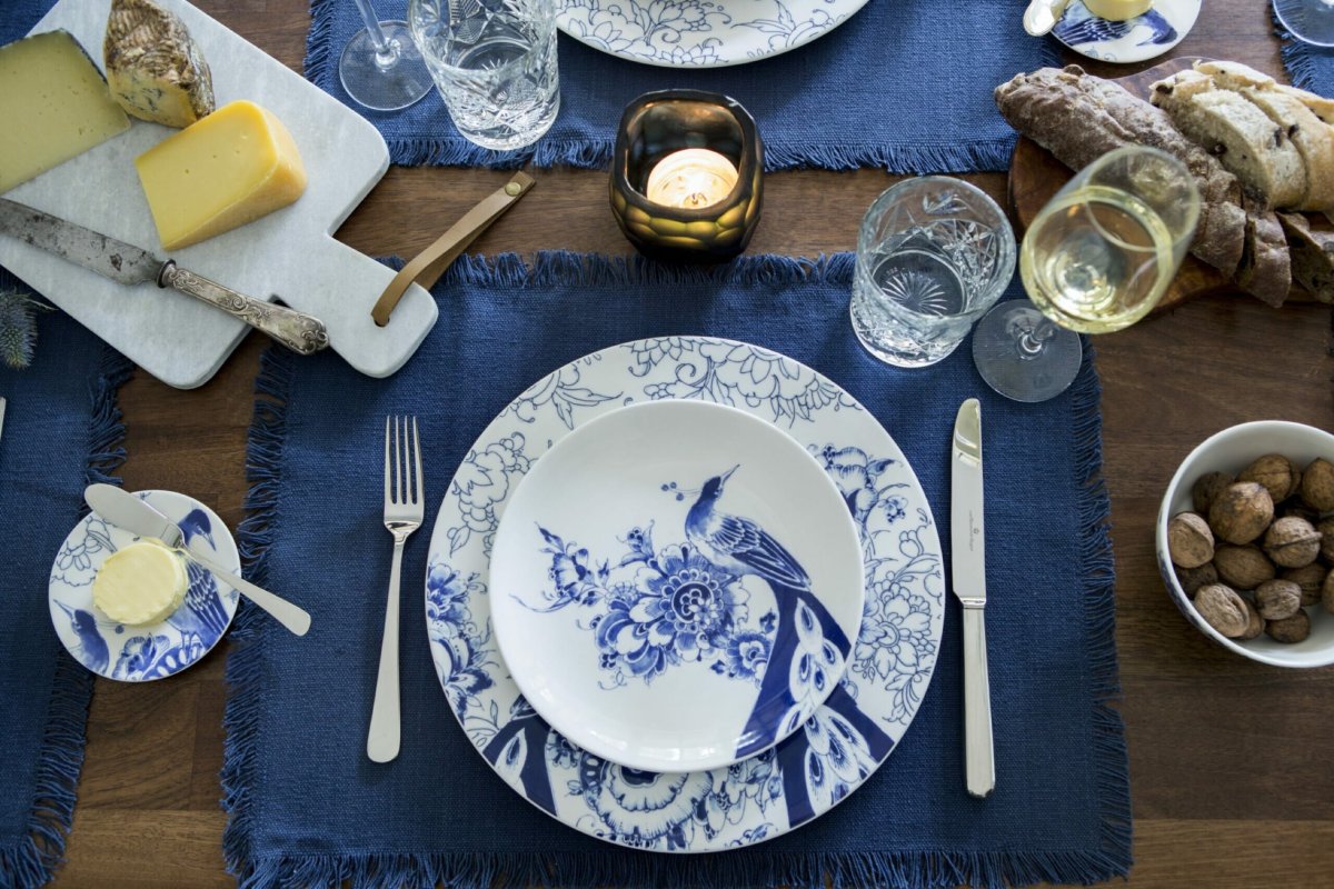Peacock Symphony door Royal Delft is een veelzijdig Delfts Blauw servies voor zowel dagelijks gebruik als voor formele diners. Eetgerei om indruk te maken op uw gasten. De handgemaakte collectie is geïnspireerd op de pauw, de vogel die symbool staat voor schoonheid, trots en waardigheid. Alledaagse eettafels veranderen met Peacock Symphony in prachtig versierde feesttafels. Dit dessertbord is een coupe-versie om uw diner in stijl af te sluiten.