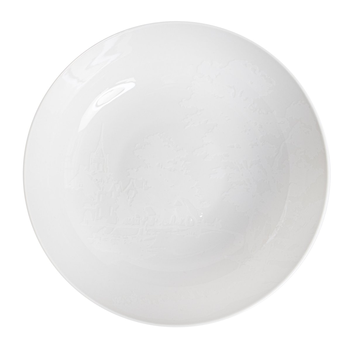 Deze schaal uit de Dutch Dawn Tableware Collection van Royal Delft heeft een diameter van 27 cm. Het is versierd met een prachtige witte ton-sur-ton decoratie van een Hollands landschap. Dit verfijnde ontwerp voegt een mystieke uitstraling toe aan elke tafelsetting. Perfect voor zowel dagelijks gebruik als speciale gelegenheden.