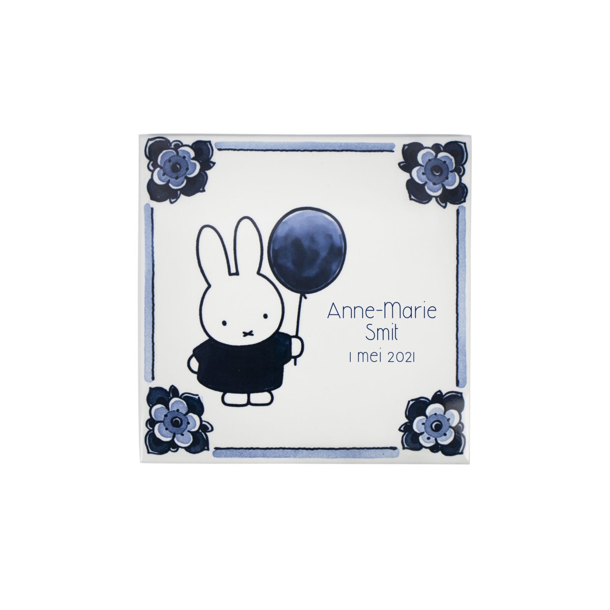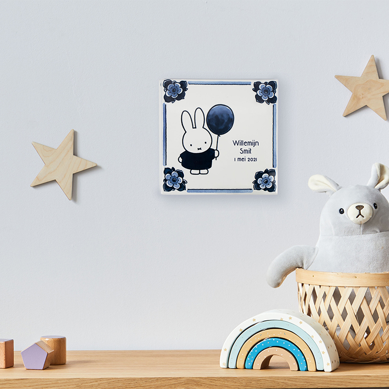 Altijd feest! Deze geboortetegel nijntje ballon is een feestelijk en bijzonder persoonlijk geschenk. De gepersonaliseerde nijntje geboortetegels zijn handgemaakt in de fabriek van Royal Delft en worden geleverd met plakhaakje en het officiële Royal Delft certificaat.