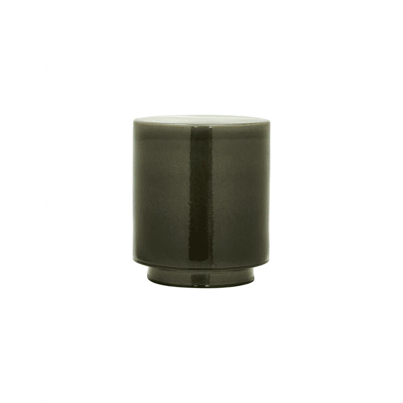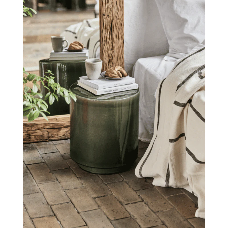 Deze handgemaakte keramische bijzettafel voegt een vleugje moderne elegantie toe aan uw interieur. De glanzende grijze glazuur varieert prachtig in tonen, wat elk stuk uniek maakt. Met zijn eigentijdse ontwerp en veelzijdigheid is het een must-have voor elk huis.